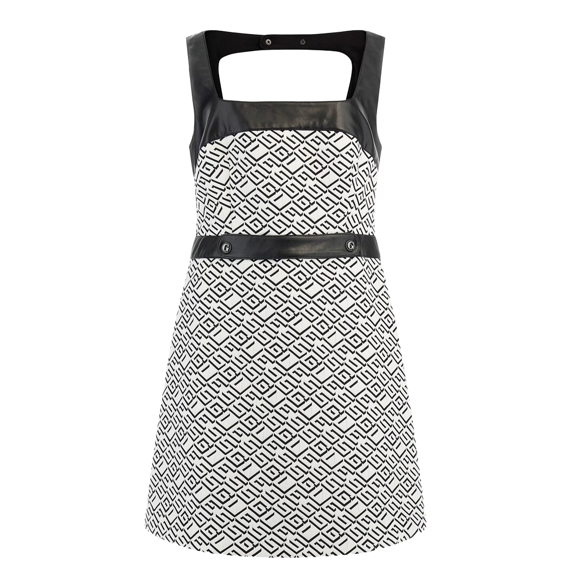 VESTIDO CORTO, MUJER, BICOLOR, CON TIRADORES, CON LOGO, CIERRE CON ZIP