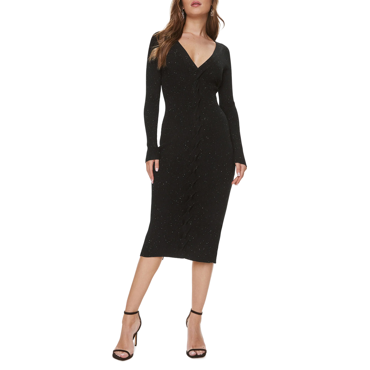VESTIDO 3/4, MUJER, CUELLO EN V, MANGA LARGA, SOLO COLOR, CON LOGO