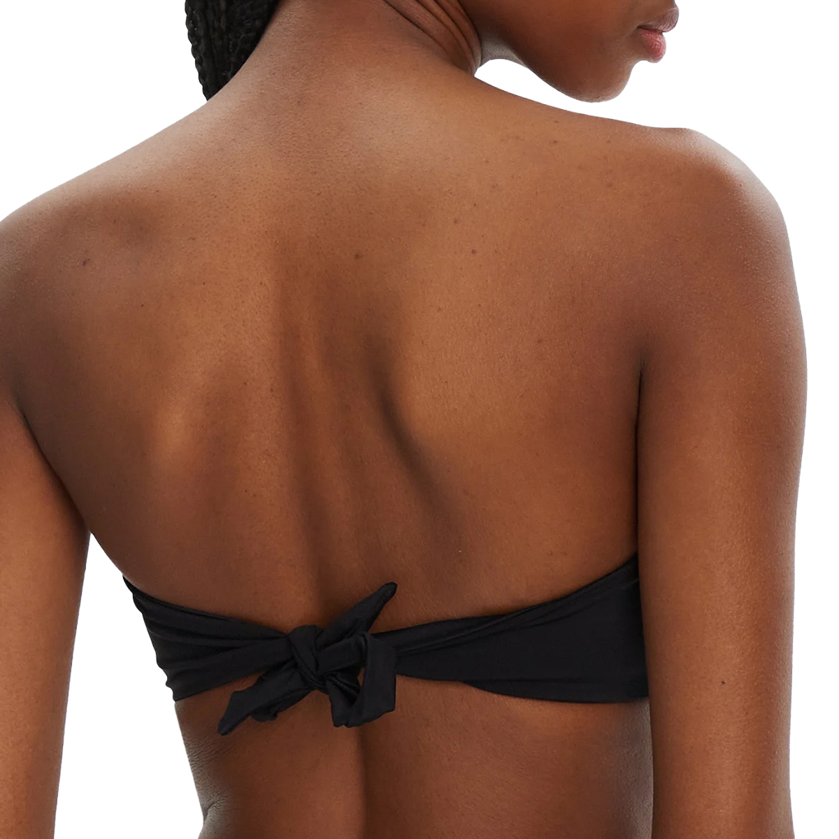 Este SOPRA BIKINI LOGO RHINESTONE BANDEAU de GUESS es una pieza de lencería de baño que destaca por su silueta de banda pura y estilizada. El diseño prescinde de tirantes para ofrecer un perfil aerodinámico y elegante, donde el logotipo realizado en cristales brillantes se convierte en el elemento decorativo central. El fruncido en los laterales permite que el tejido se adapte con suavidad al contorno lateral, proporcionando un ajuste seguro y una apariencia equilibrada.
