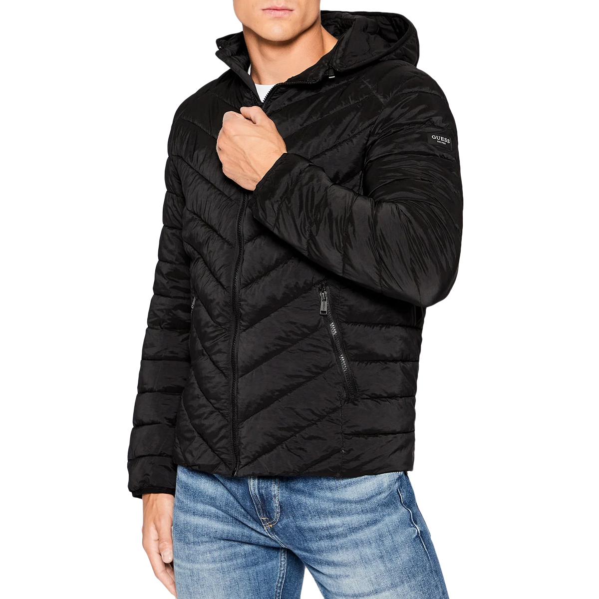 CHAQUETA DE PLUMAS, HOMBRE, BOLSILLOS, CON TAPA, MANGA LARGA, SOLO COLOR, CON LOGO, CIERRE CON ZIP