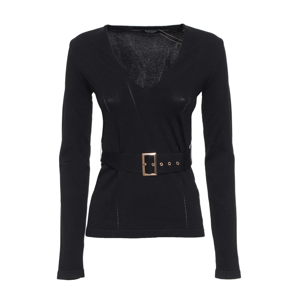 JERSEY MUJER, SOLO COLOR, CUELLO EN V, MANGA LARGA CON CINTURÓN
