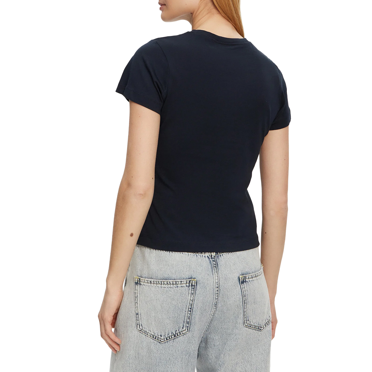 CAMISETA, MUJER, CUELLO REDONDO, MANGA CORTA, BICOLOR, LOGO BORDADO
