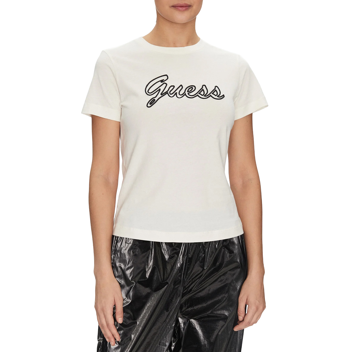 Esta T-shirt Active Tee de GUESS es una prenda básica de alta calidad con un diseño contemporáneo y funcional, diseñada para satisfacer las exigencias del mercado minorista. La silueta se ajusta de forma armónica al torso, presentando un cuello redondo clásico y mangas cortas que definen una estructura equilibrada y profesional.