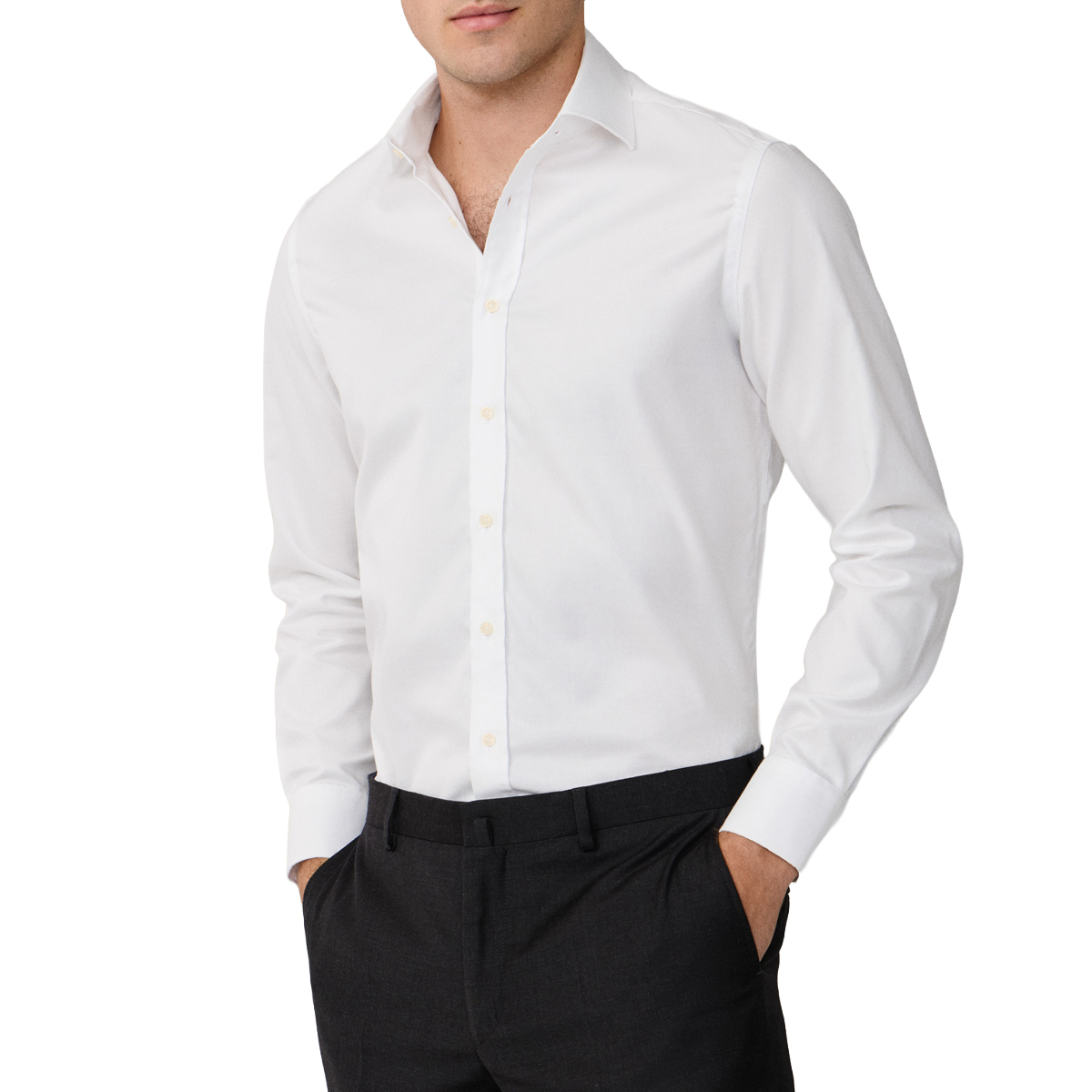CAMISA, HOMBRE, CUELLO CLÁSICO, SLIM FIT, MANGA LARGA, SOLO COLOR, CIERRE CON BOTONES