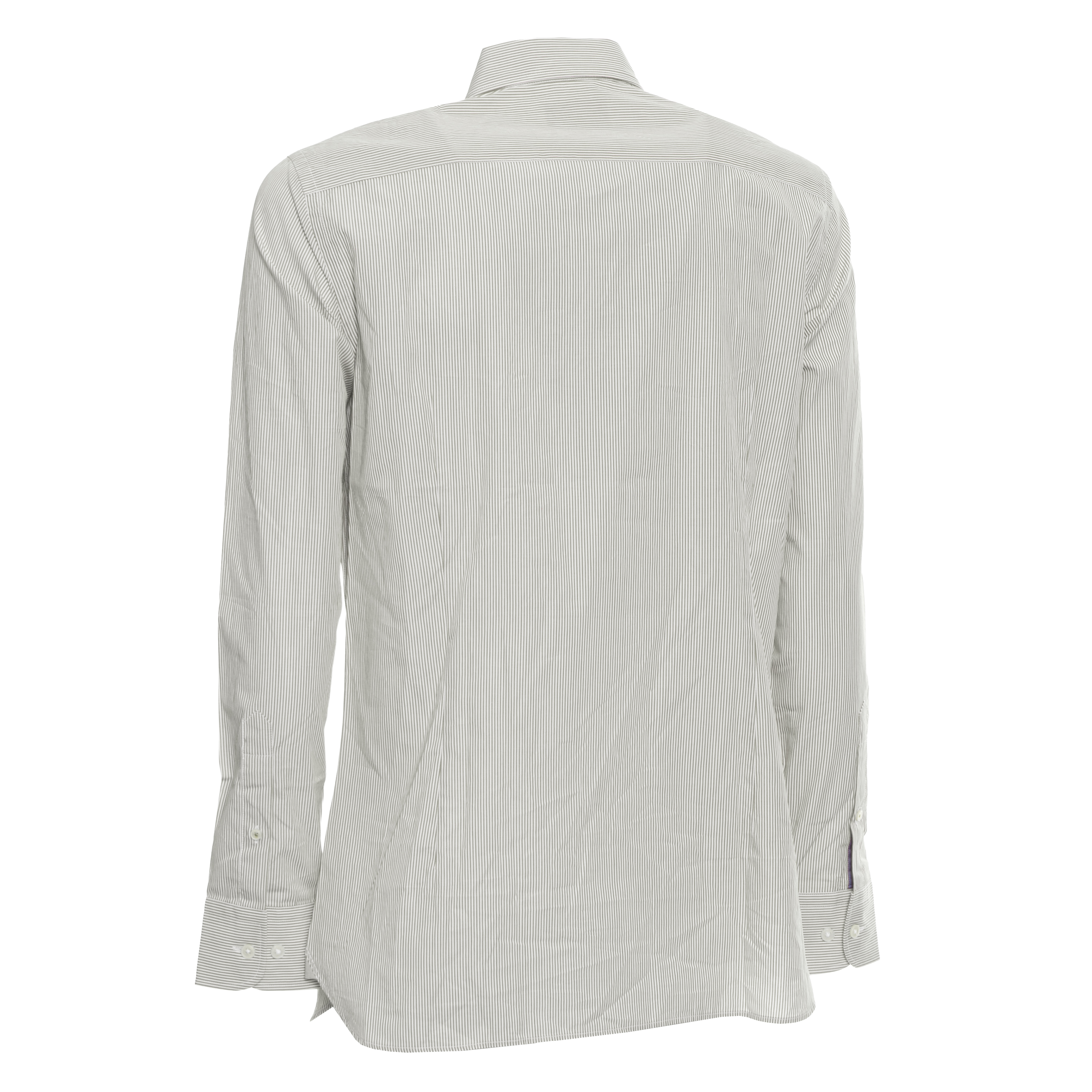 CAMISA RAYADA, HOMBRE, CUELLO CLÁSICO, SLIM FIT, MANGA LARGA, BICOLOR, LOGO BORDADO, CIERRE CON BOTONES