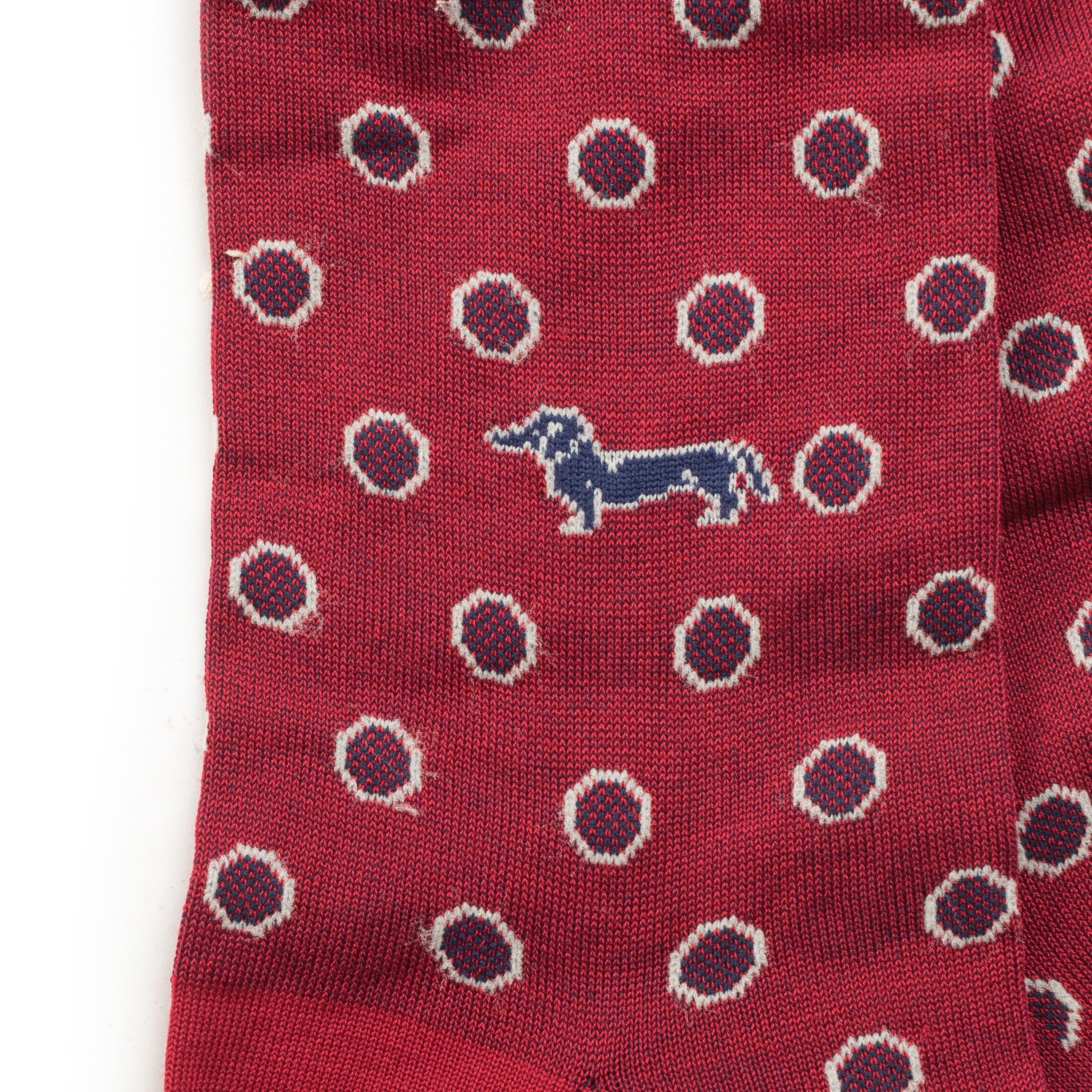 La suavidad del algodón predomina en estos calcetines de HARMONT & BLAINE, compuestos por un 80% de fibras naturales y un 20% de poliamida. Esta mezcla técnica ofrece una textura sedosa al tacto y una elasticidad equilibrada. De fabricación italiana, la prenda luce un patrón repetitivo de pequeños elementos circulares que recorren toda la pieza. El logotipo del perro, característico de la firma, se sitúa de forma visible en el lateral, aportando identidad visual. Su caña larga finaliza en un puño elástico de tejido acanalado que garantiza una sujeción constante sin comprometer la comodidad.
