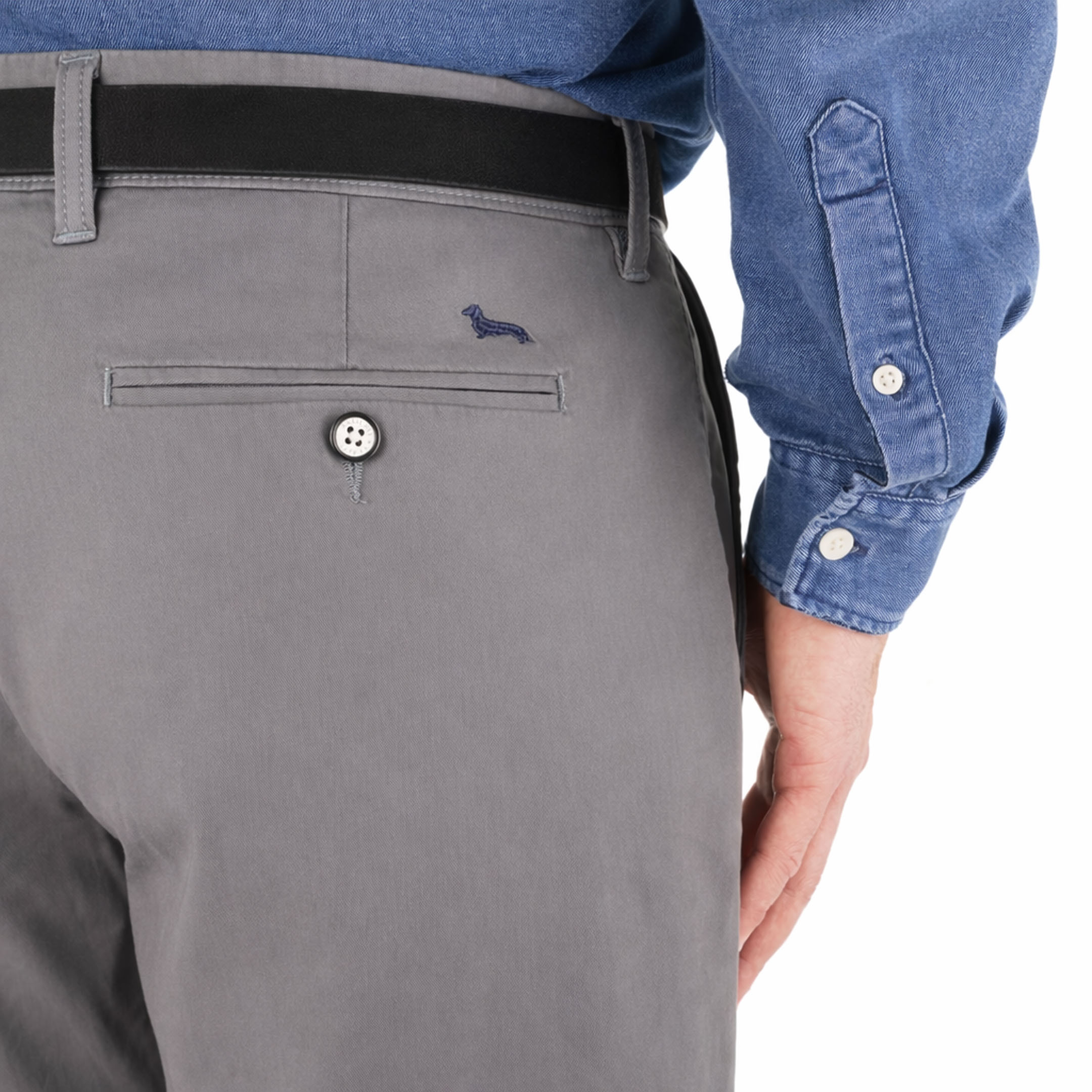Este pantalón chino de Harmont & Blaine presenta una arquitectura de cinco bolsillos que prioriza la funcionalidad y la estética sobria. La silueta narrow fit se ajusta de forma precisa, ofreciendo un perfil esbelto y contemporáneo. Confeccionado con un 97% de algodón, el tejido muestra una textura compacta y resistente, suavizada por la elasticidad del elastano. El cierre frontal se compone de una cremallera oculta y un botón metálico, asegurando un ajuste firme. Cada costura ha sido ejecutada con rigor, resultando en una prenda de superficie lisa y terminaciones impecables.