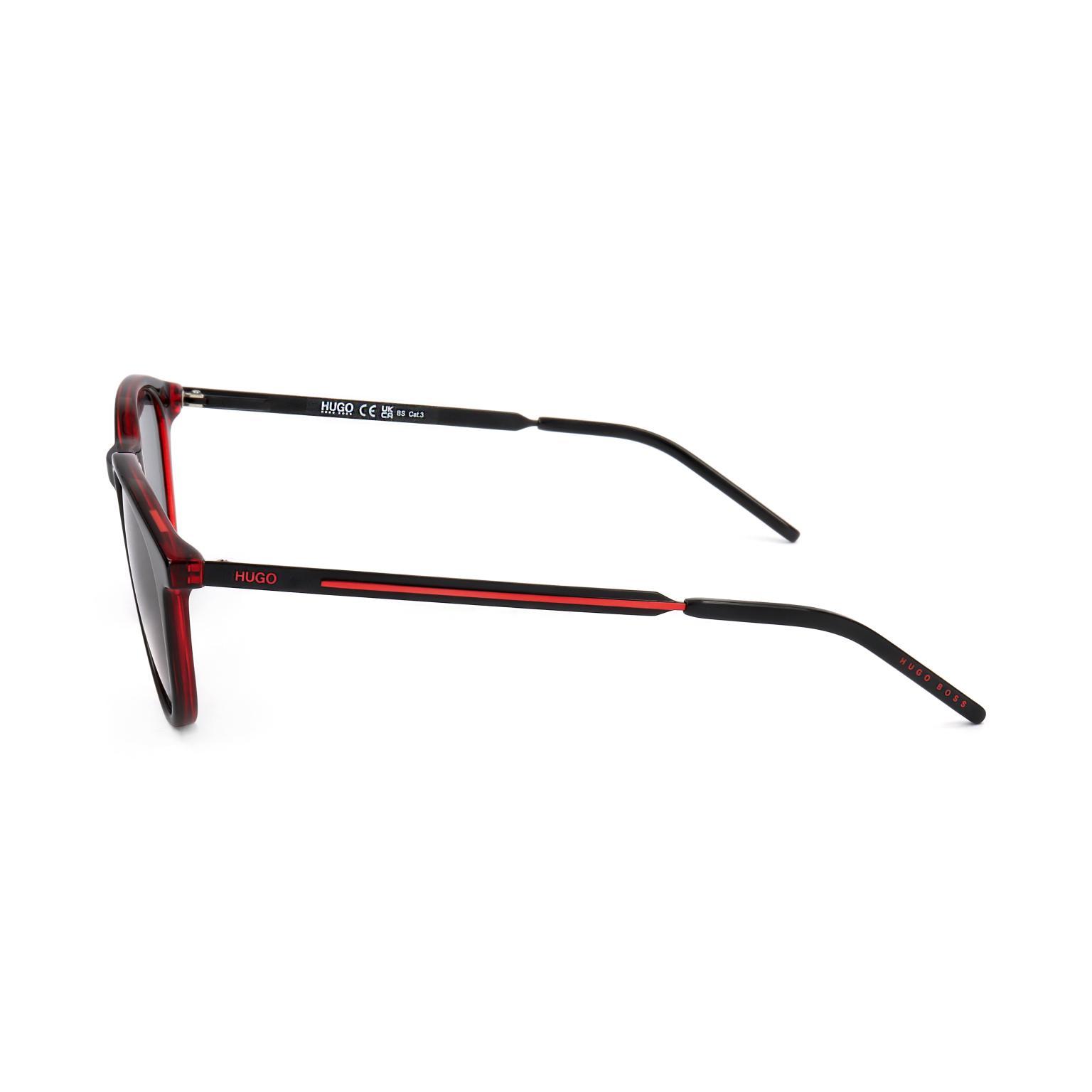Estos gafas de HUGO destacan por su diseño geométrico equilibrado, con aros circulares pronunciados que proyectan una imagen contemporánea. La unión entre las lentes se resuelve mediante un puente metálico de líneas puras, creando un contraste visual con el volumen del frontal de la montura.