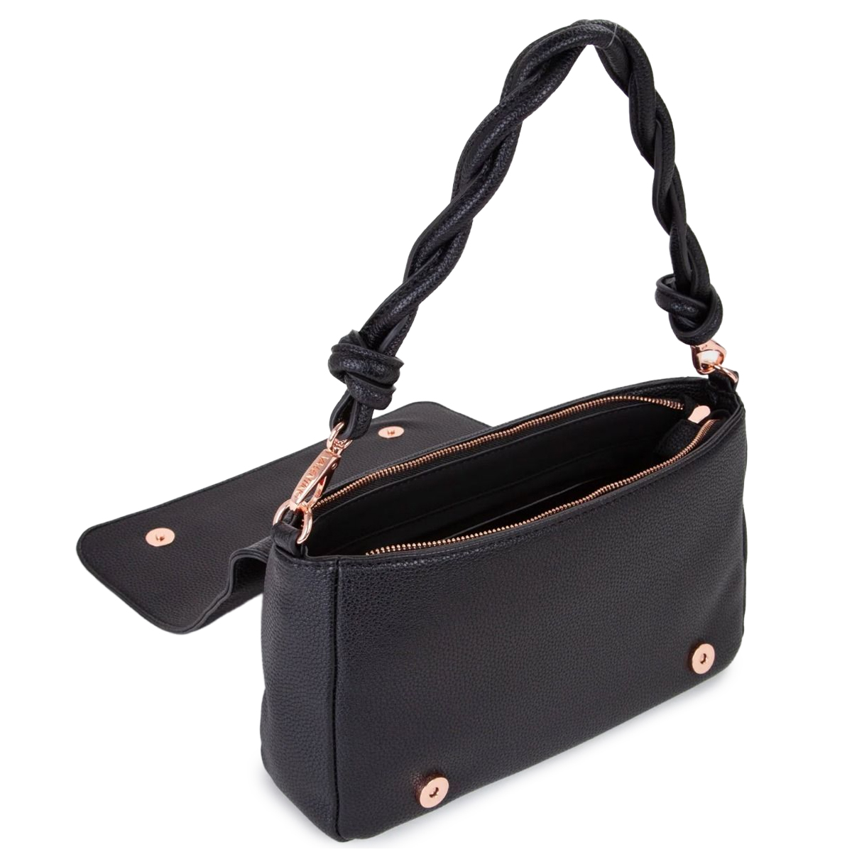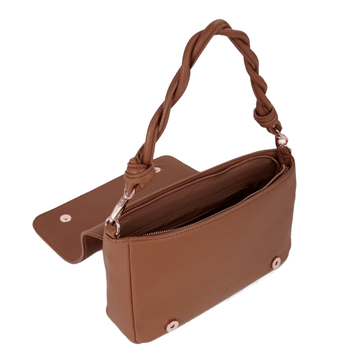 BOLSO A HOMBRO, MUJER, SOLO COLOR, CON LOGO, CIERRE CON BOTONES