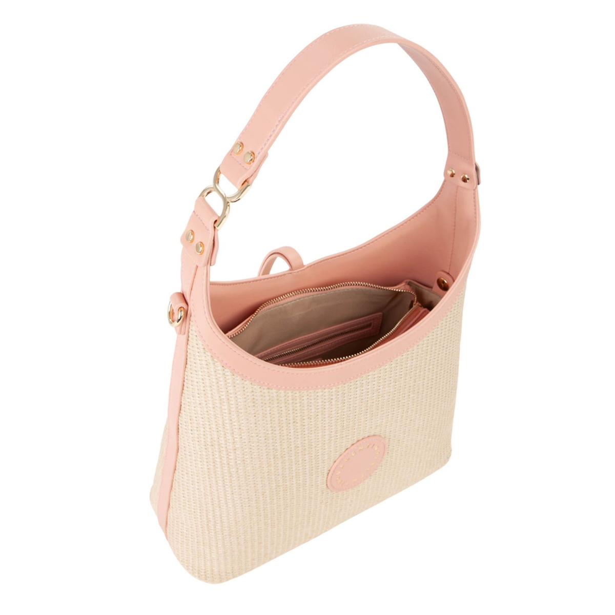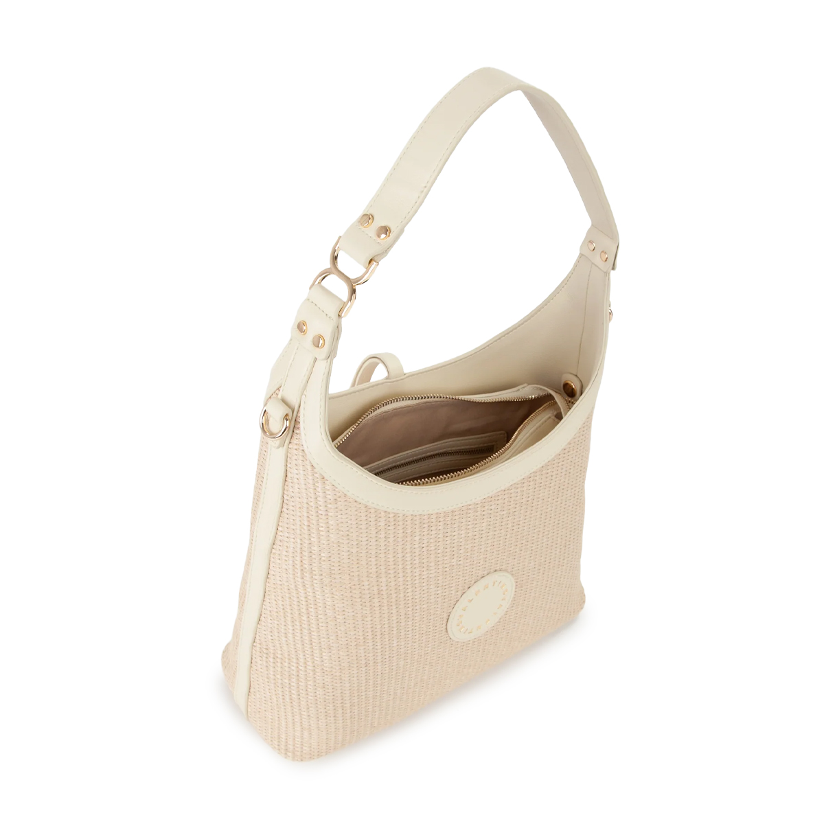 BOLSO A HOMBRO, MUJER, BICOLOR, LOGOTIPO IMPRESO, CIERRE MAGNETICO, CIERRE CON ZIP