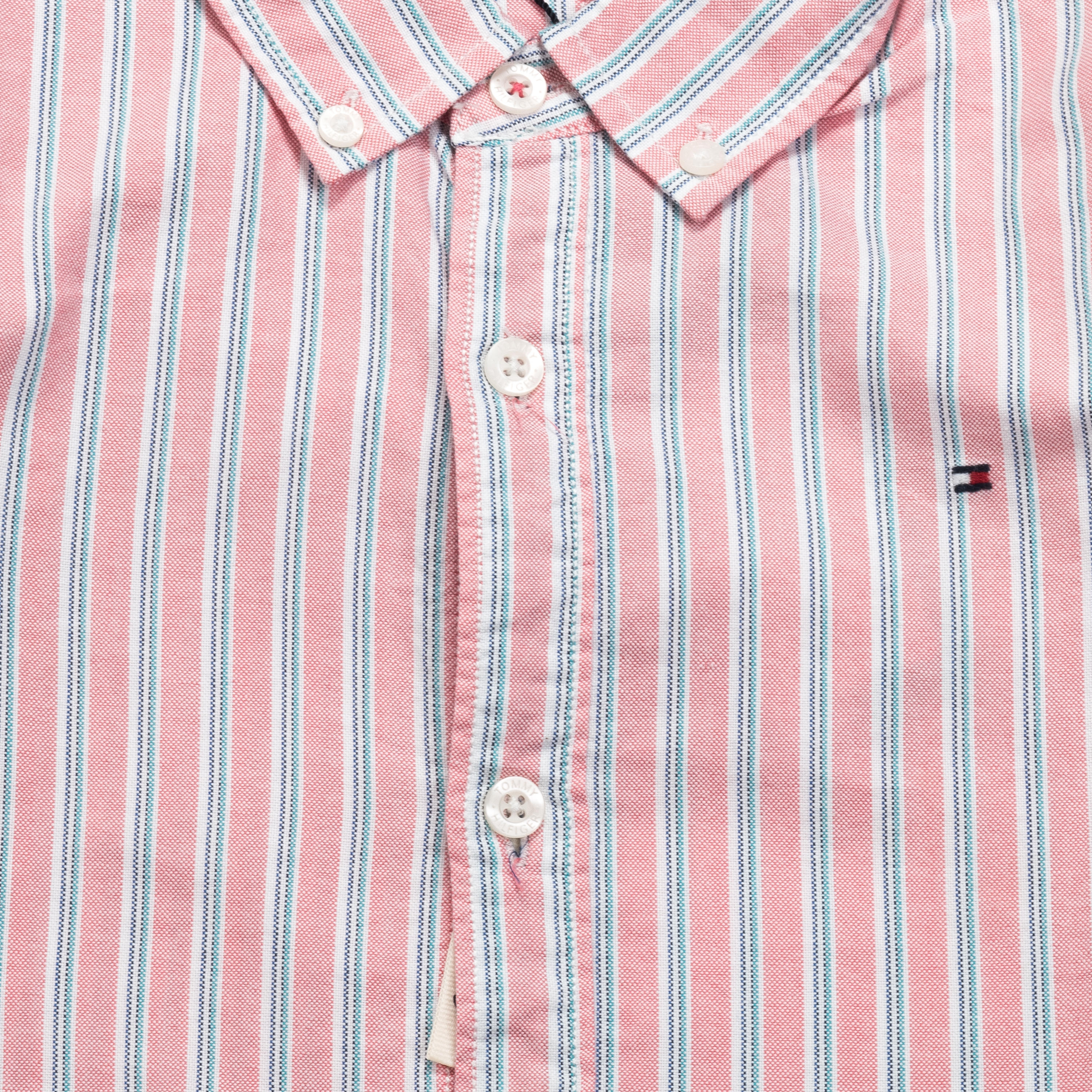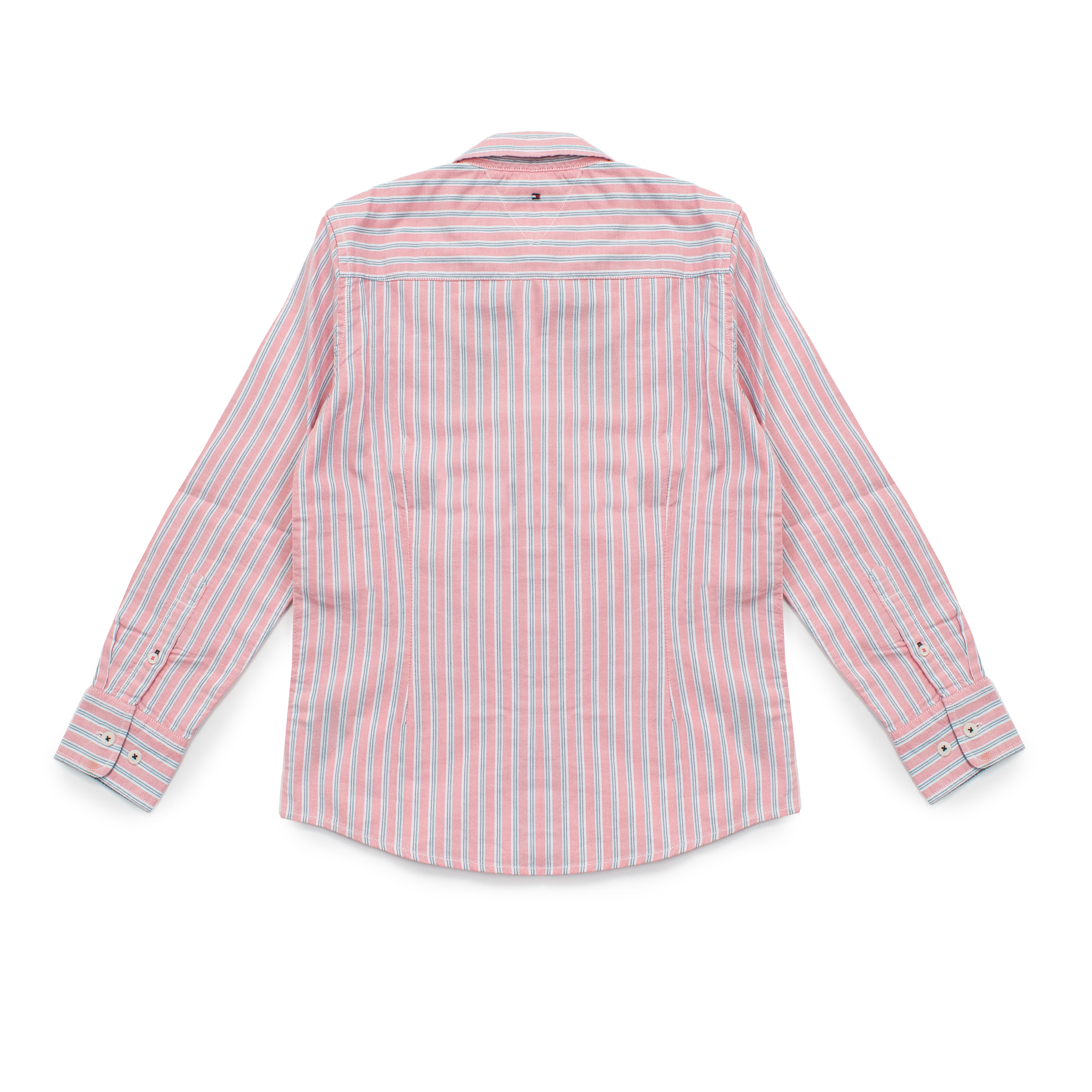 CAMISA RAYADA, NIÑO, BUTTON DOWN, MANGA LARGA, BICOLOR, CON LOGO, CIERRE CON BOTONES