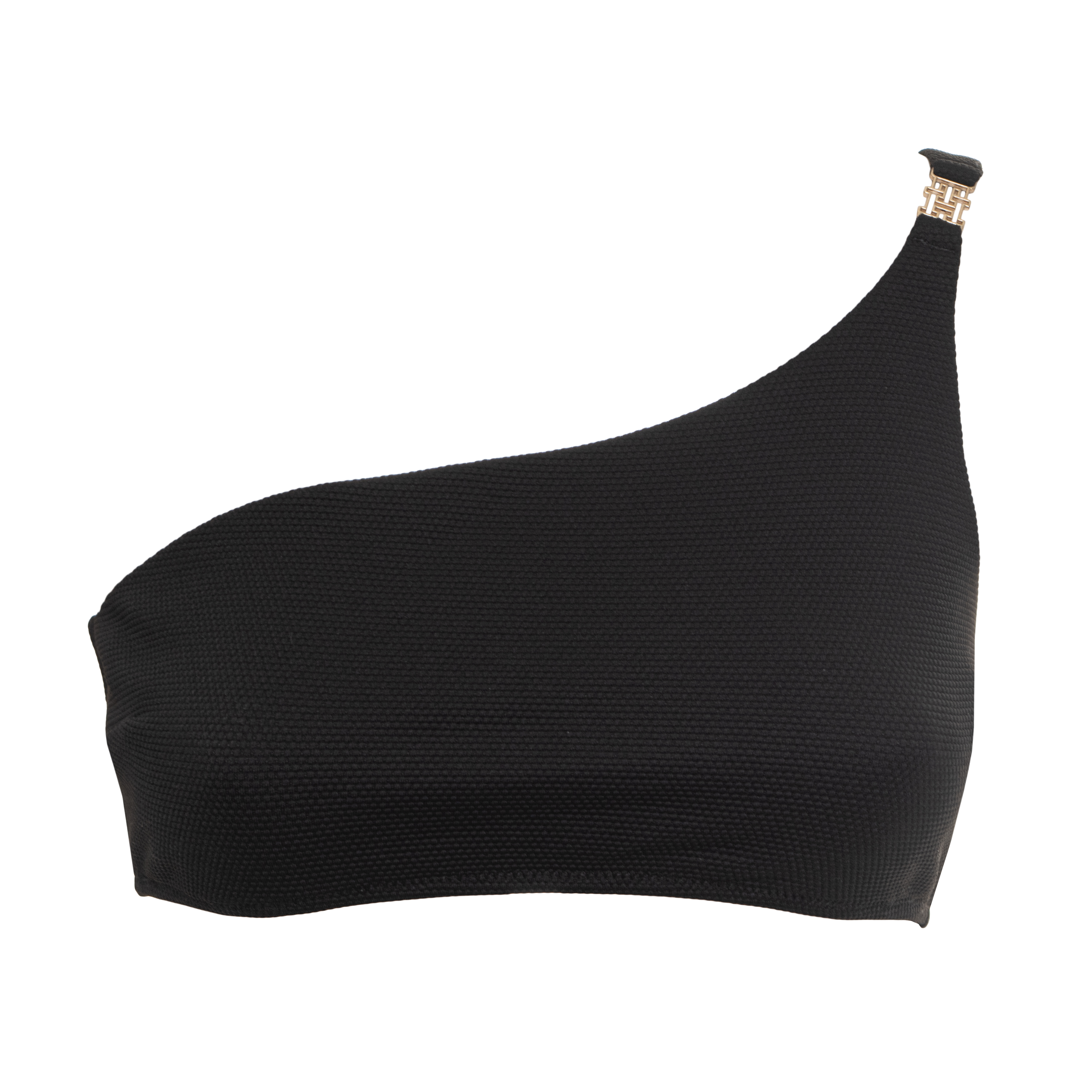 Este sopra bikini ONE SHOULDER TOP, BDS de TOMMY HILFIGER destaca por su arquitectura asimétrica y su estética depurada. El diseño de un solo hombro crea una silueta distinguida que se aleja de los cortes convencionales, integrando un herraje metálico con el emblema de la marca que funciona como un punto de anclaje visual y estructural. La textura en relieve del tejido eleva la pieza a una categoría superior de diseño.