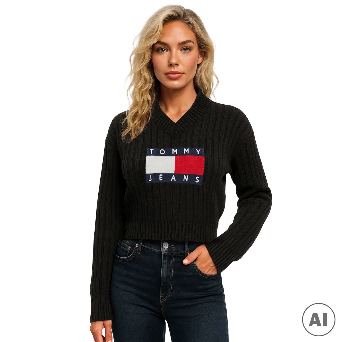 JERSEY, MUJER, CUELLO EN V, MANGA LARGA, SOLO COLOR, LOGO BORDADO