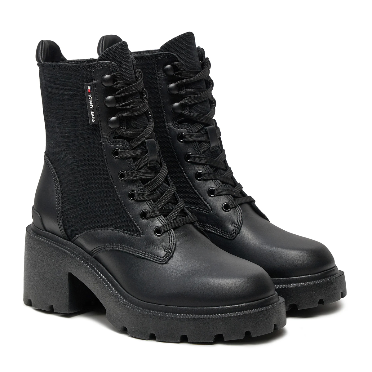 BOTAS, MUJER, SOLO COLOR, CON CORDONES, CON LOGO, SUELA DE GOMA, CIERRE CON ZIP