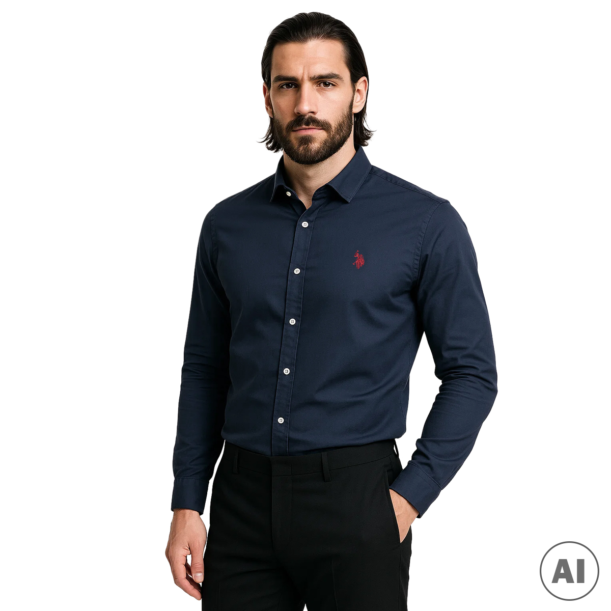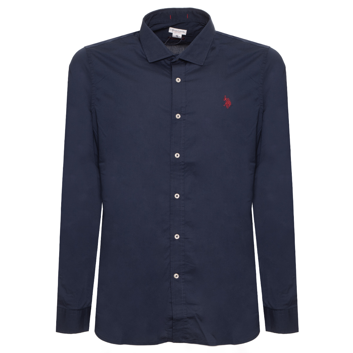 CAMISA, HOMBRE, CUELLO CLÁSICO, SLIM FIT, MANGA LARGA, SOLO COLOR, LOGO BORDADO, CIERRE CON BOTONES