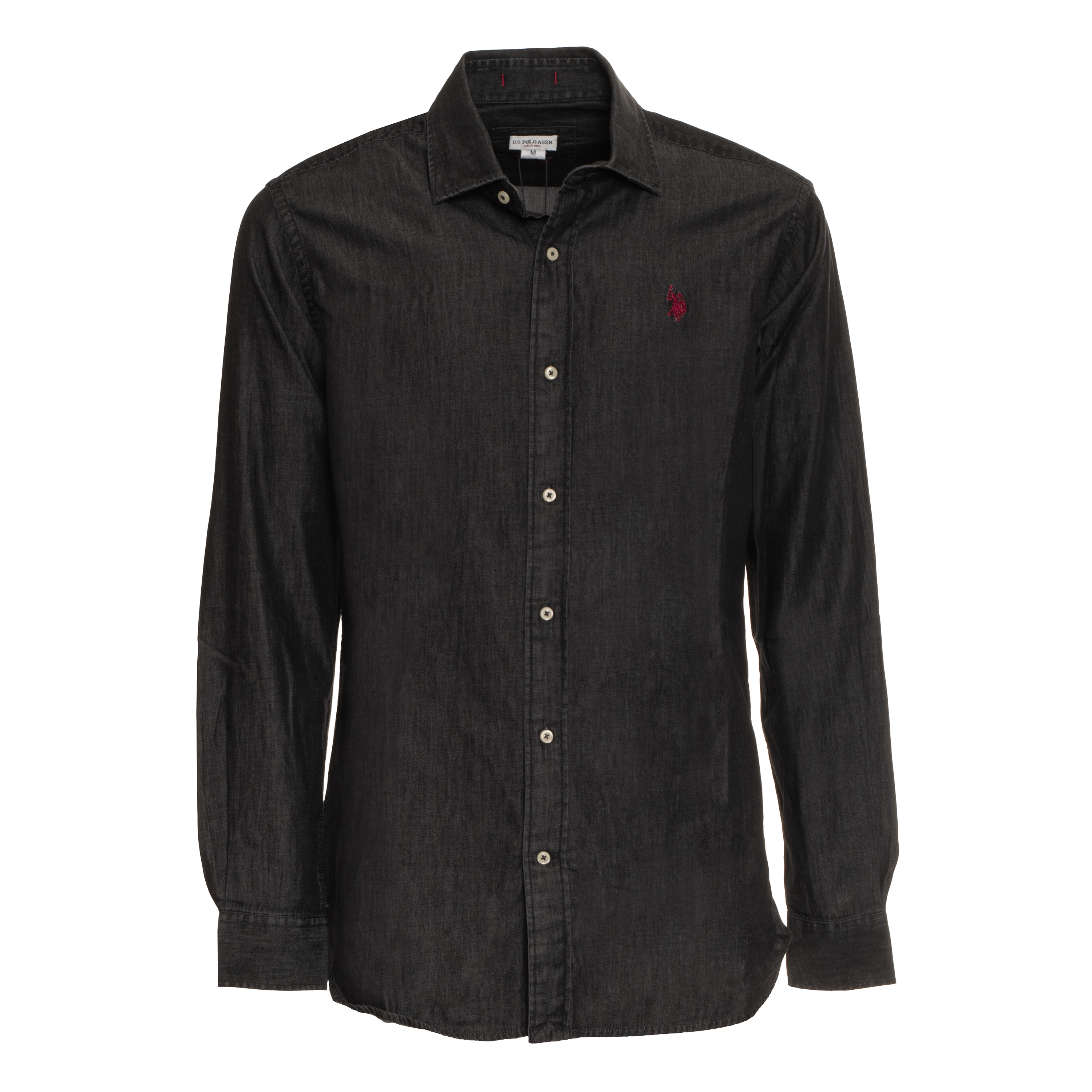 CAMISA, HOMBRE, CUELLO CLÁSICO, SLIM FIT, MANGA LARGA, SOLO COLOR, LOGO BORDADO, CIERRE CON BOTONES