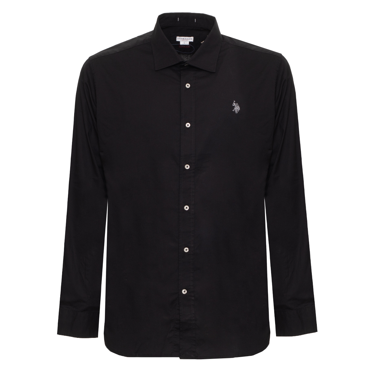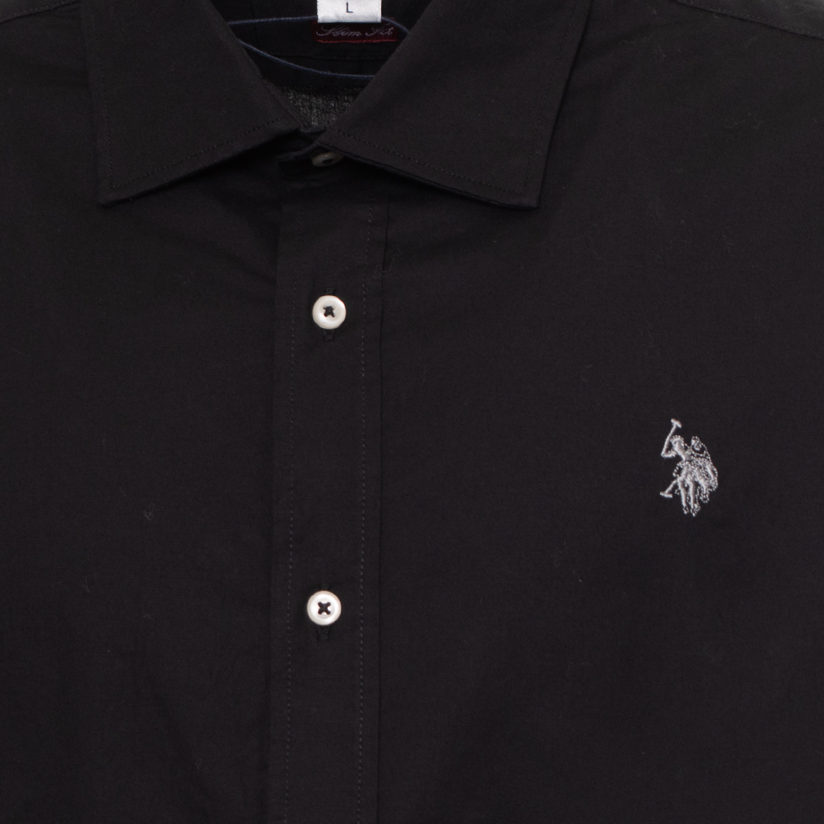 CAMISA, HOMBRE, CUELLO CLÁSICO, SLIM FIT, MANGA LARGA, SOLO COLOR, LOGO BORDADO, CIERRE CON BOTONES