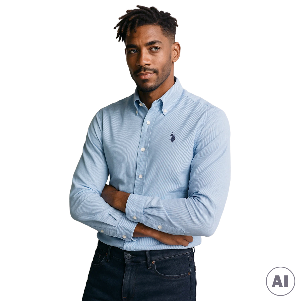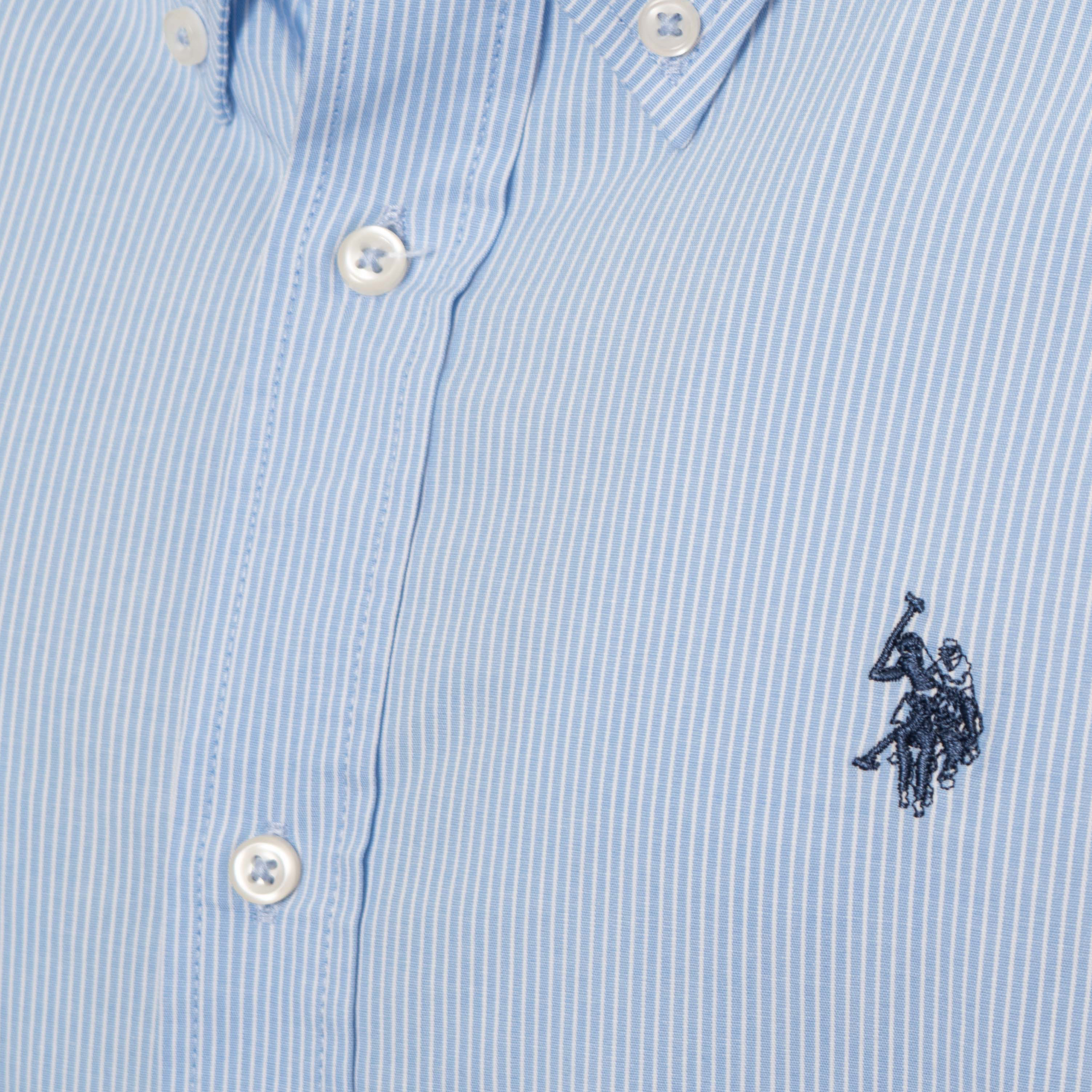 CAMISA, HOMBRE, CUELLO CLÁSICO, REGULAR FIT, MANGA LARGA, A RAYAS, BICOLOR, LOGO BORDADO, CIERRE CON BOTONES