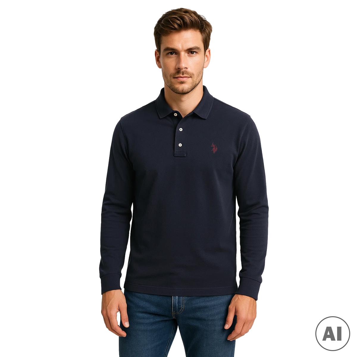 POLO, HOMBRE, MANGA LARGA, SOLO COLOR, LOGO BORDADO, CON BOTONES