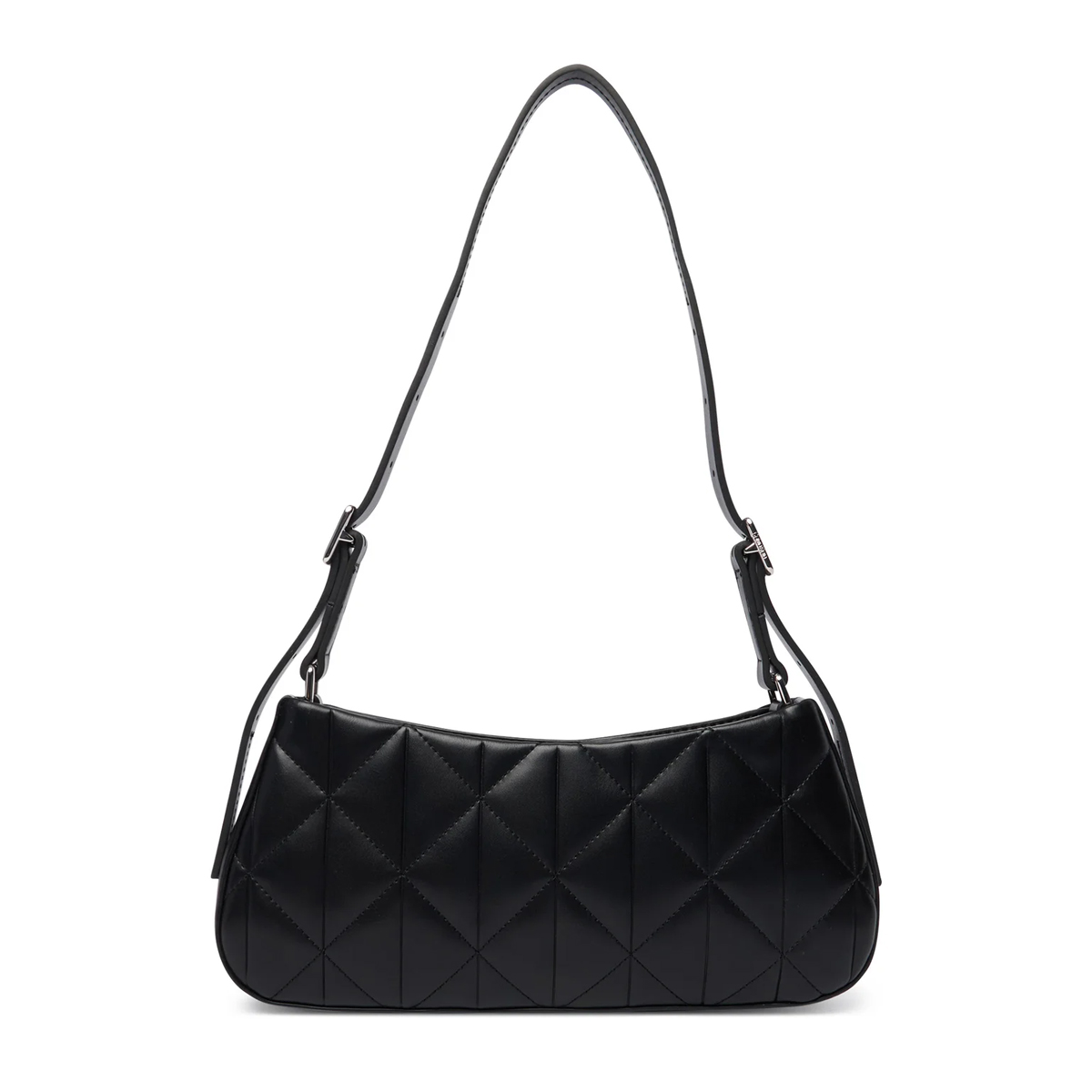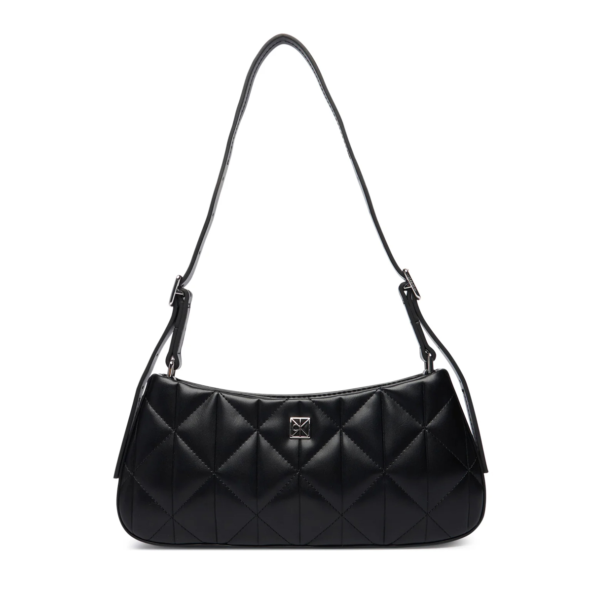 Ce sac porté épaule QUILTED SMALL SHOULDER BAG de CALVIN KLEIN est un modèle à l'esthétique architecturale, marqué par un travail de matelassage précis. Sa forme allongée et son profil mince en font un accessoire d'une élégance discrète, soulignée par un logo métallique carré apposé au centre. La anse unique, ajustable grâce à des boucles argentées, assure un porté confortable tout en conservant une silhouette structurée.