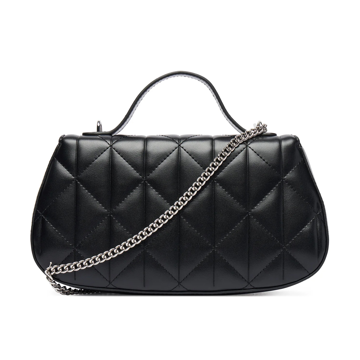 Cette BORSA A MANO QUILTED TOP HANDLE B, UB1 de CALVIN KLEIN est une pièce à la géométrie précise, soulignée par un matelassage en losanges généreux. La fermeture magnétique dissimulée préserve la pureté des lignes, tandis que le petit logo carré en métal apporte une touche de brillance subtile sur le panneau avant qui attire le regard avec élégance.