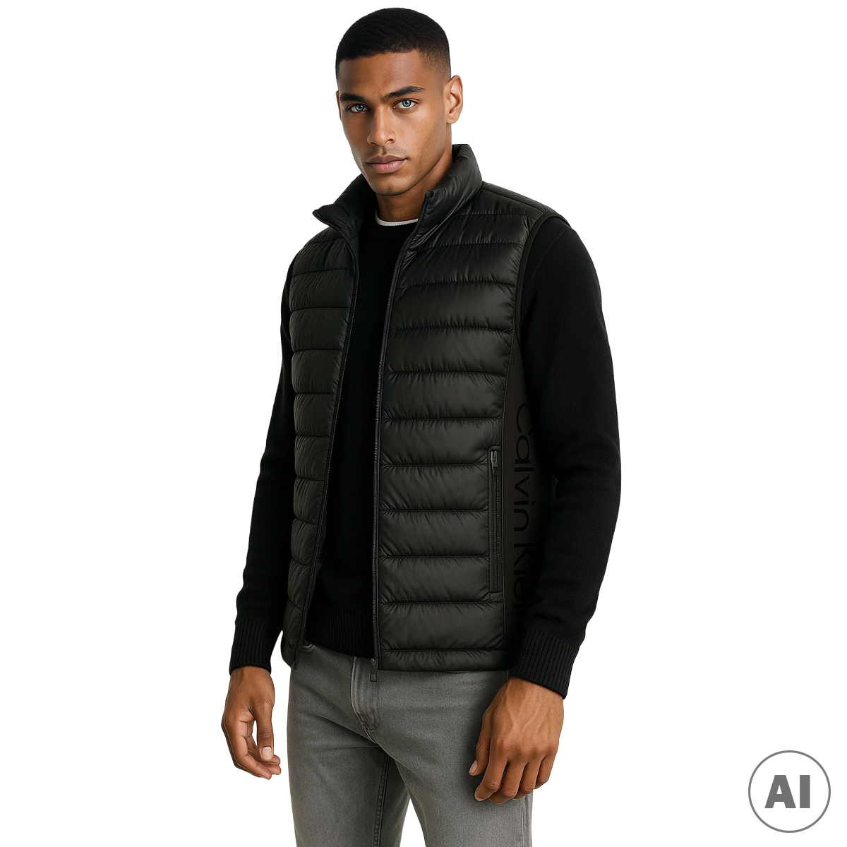 SANS MANCHES, POUR HOMMES, POCHES, SANS MANCHES, UNI, AVEC LOGO, FERMETURE ZIP