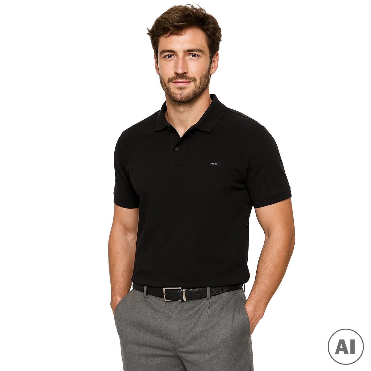 POLO, POUR HOMMES, SLIM FIT, MANCHES COURTES, UNI, AVEC LOGO, AVEC BOUTONS