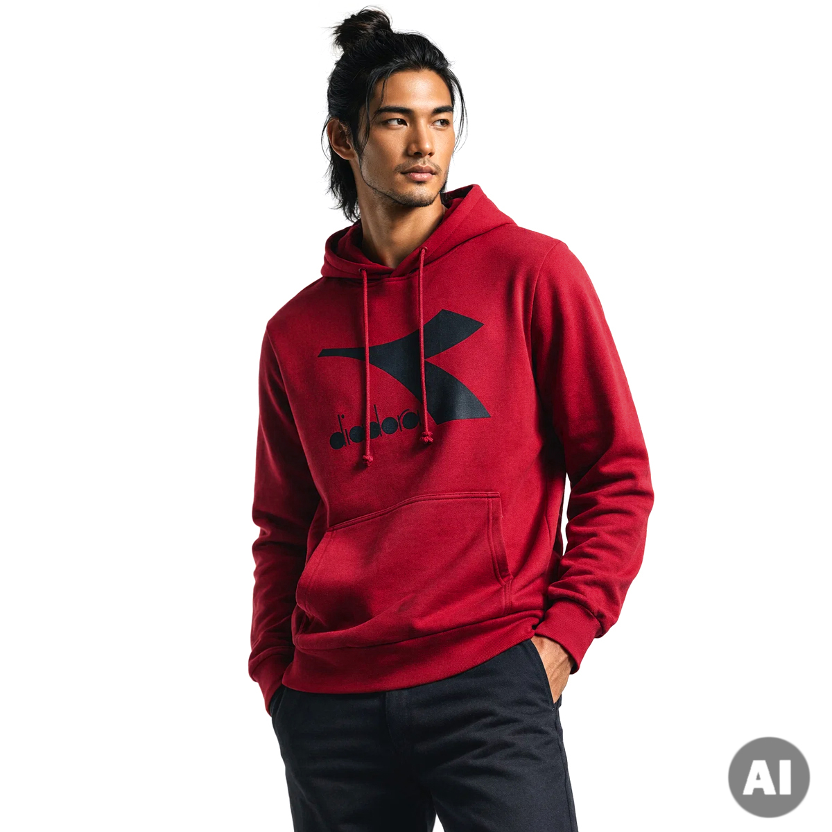 SWEATSHIRT, POUR HOMMES, KANGOUROU POCHE, MANCHES LONGUES, UNI, AVEC LOGO, AVEC CAPUCHE