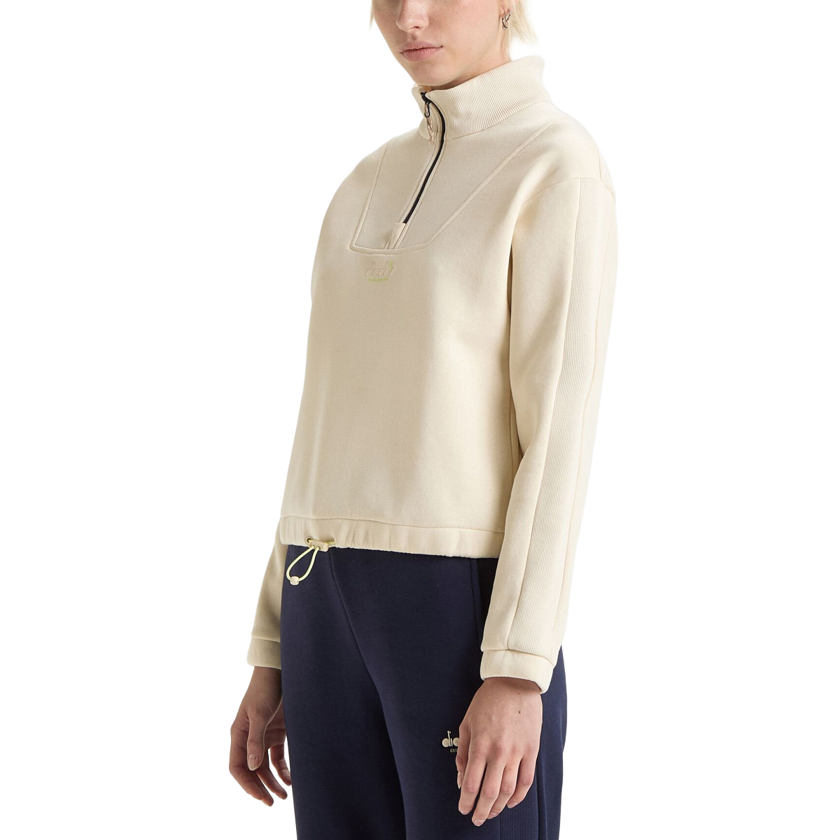 SWEATSHIRT, POUR FEMMES, COL MONTANT, MANCHES LONGUES, UNI, AVEC LOGO, FERMETURE ZIP