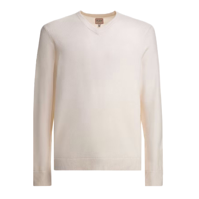 PULL, POUR HOMMES, DÉCOLLETÉ EN V, MANCHES LONGUES, UNI, AVEC LOGO