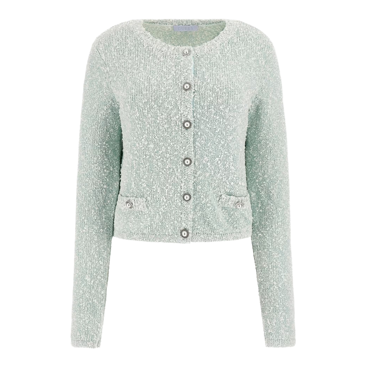 Ce cardigan DOROTHY CN LS CARDI SWTR de GUESS est un vêtement de maille à la coupe précise et aux finitions soignées. Les boutons métalliques travaillés, présents sur la patte de boutonnage et les petites poches plaquées, soulignent une élégance géométrique. La maille épaisse et texturée confère à cette pièce une tenue exemplaire, garantissant une silhouette nette et professionnelle qui valorise le savoir-faire de la marque.