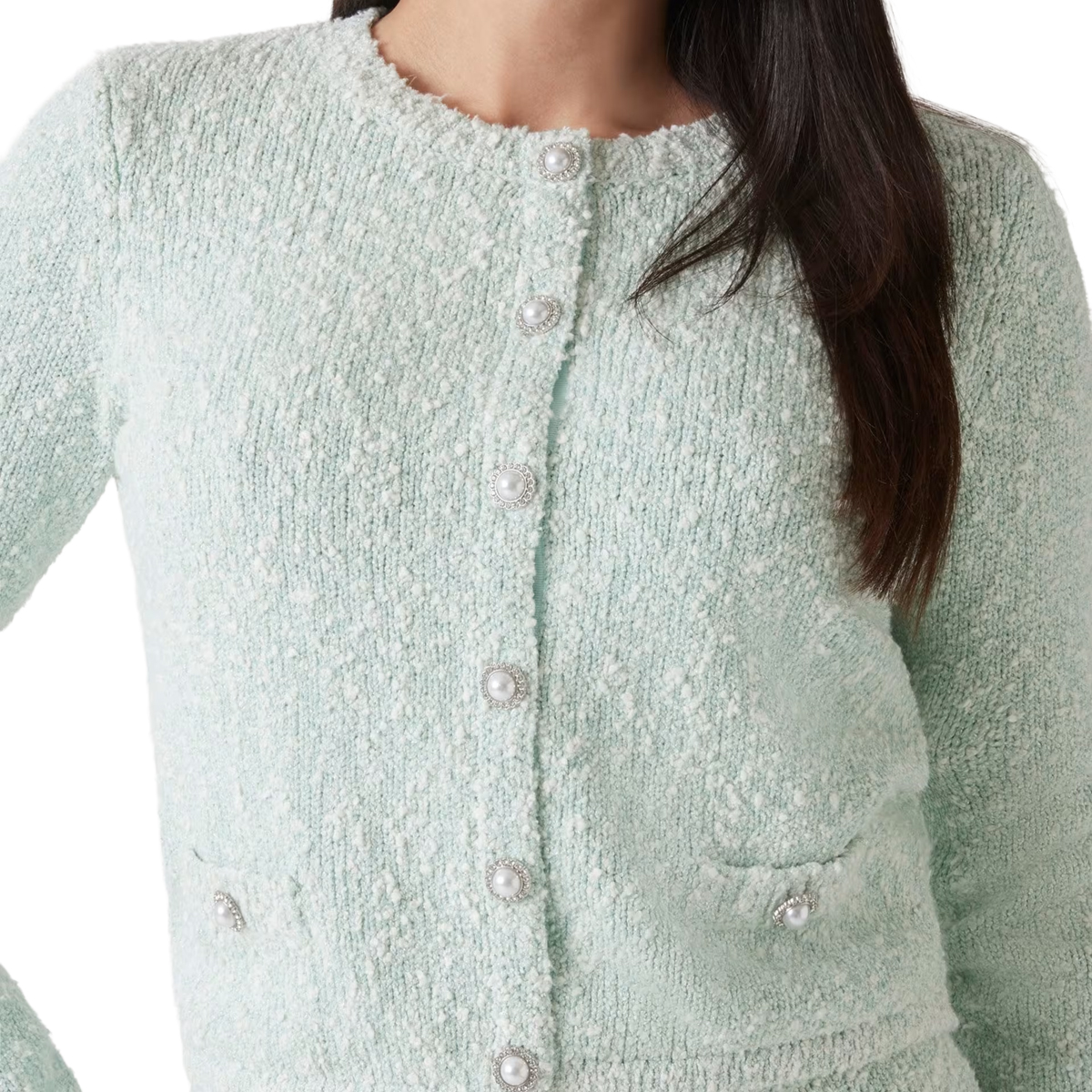 CARDIGAN, POUR FEMMES, COL RAS DU COU, MANCHES LONGUES, BICOLORE, AVEC LOGO, FERMETURE BOUTON