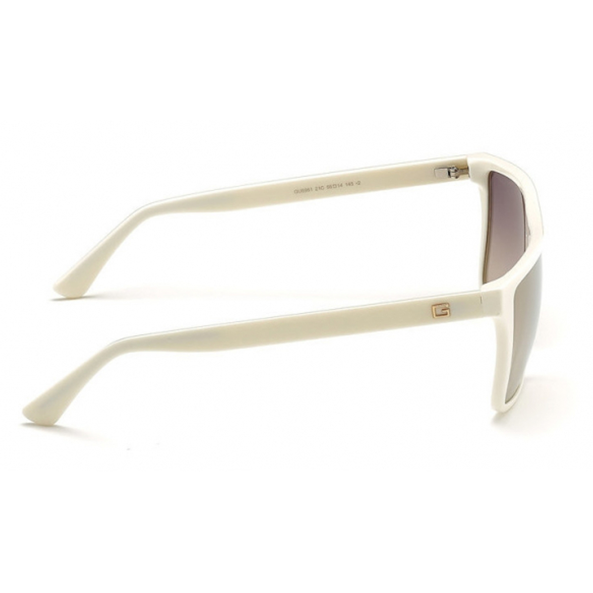 Ces occhiali GUESS présentent une monture imposante et architecturale, dont la ligne de sourcil droite souligne un regard affirmé. Le pont est orné d'une plaque métallique distinctive, apportant une touche de raffinement technique à cette silhouette aux angles nets et aux surfaces lisses.