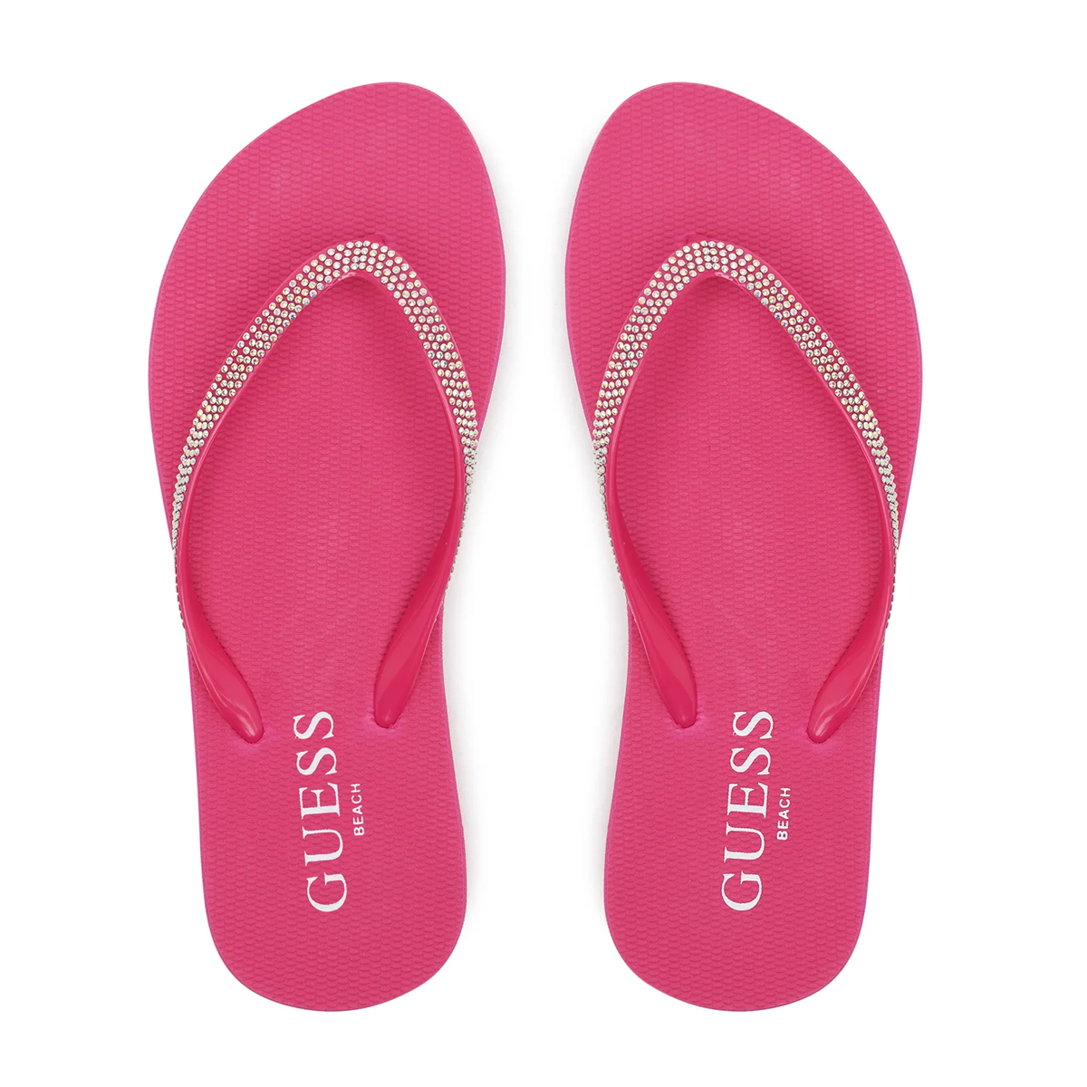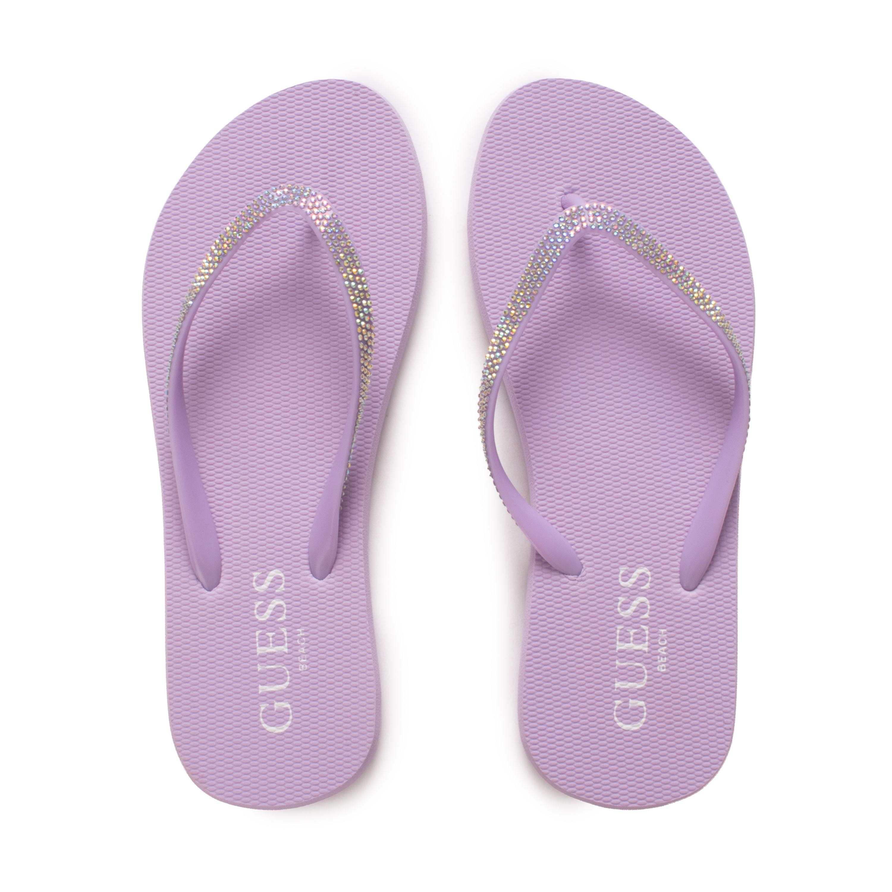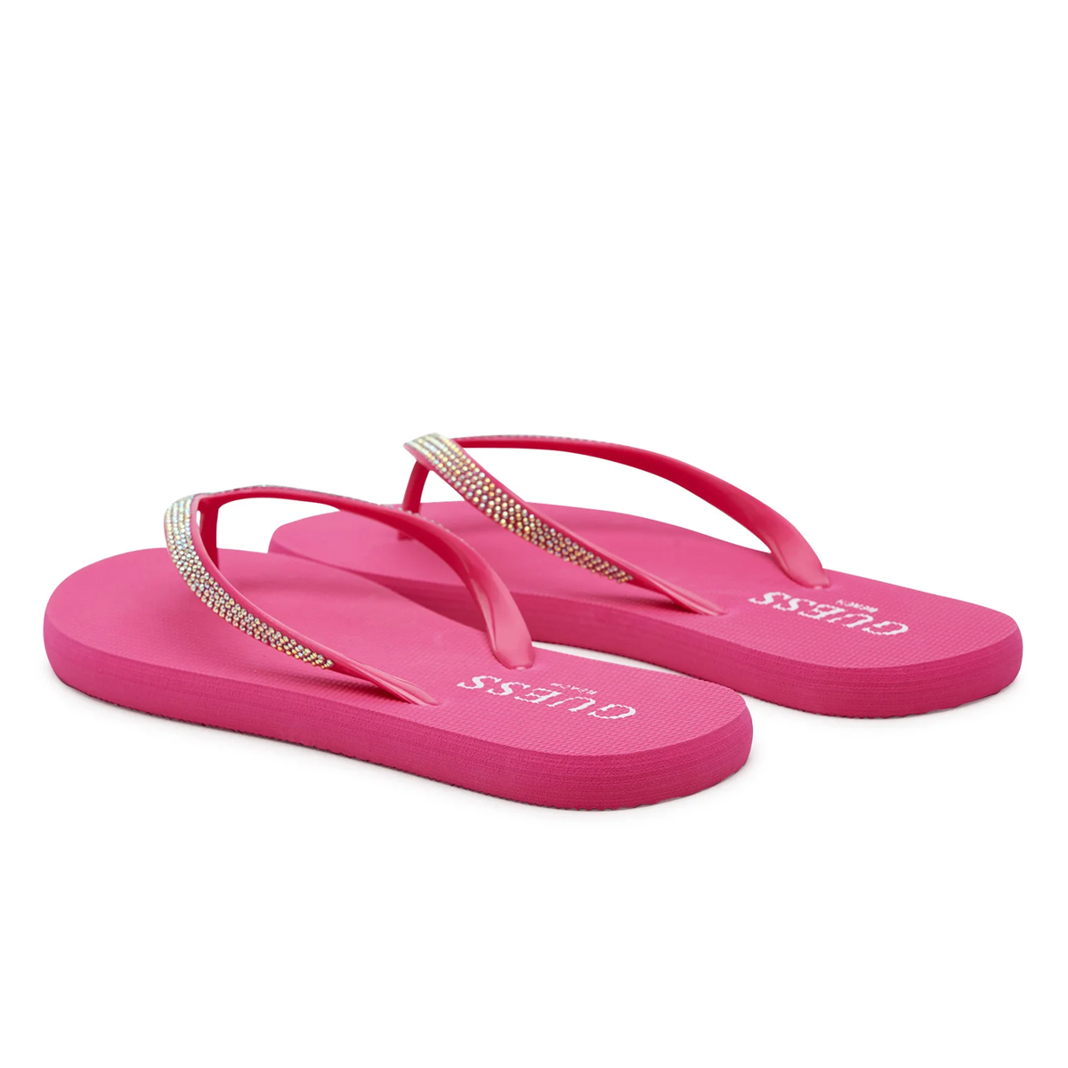 Cette chaussure FLIP FLOP RHINESTONE de GUESS est une pièce qui privilégie la finesse et l'éclat pour une allure distinguée. Les brides étroites sont méticuleusement serties de strass étincelants, créant un effet visuel prestigieux sur un profil épuré. Le relief texturé de la semelle intérieure assure une stabilité optimale tout en offrant un confort discret à chaque pas.