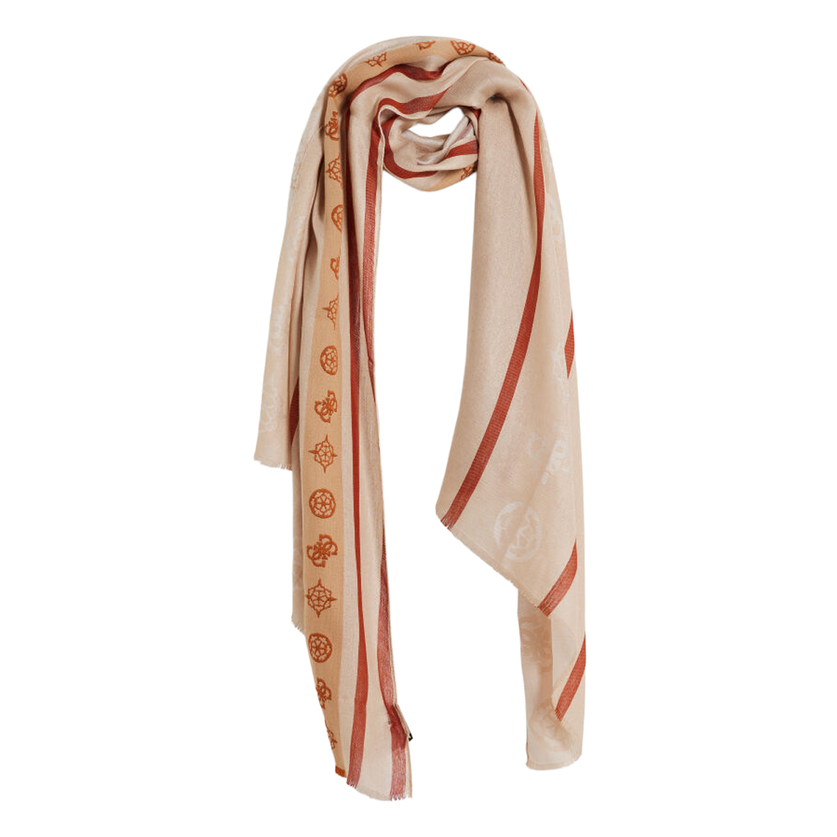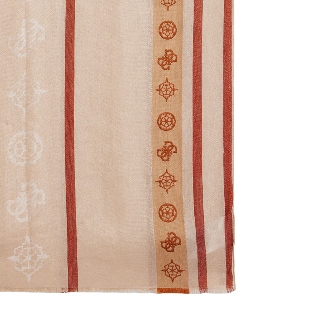 Cette pashmina SCARF PEONY STRIPES 80X180 de GUESS captive par la précision de ses motifs circulaires et la linéarité de ses bordures contrastées. La transparence subtile du tissage révèle une fabrication soignée, où chaque logo est intégré avec une finesse artistique, offrant une allure à la fois classique et contemporaine pour les assortiments de boutiques.