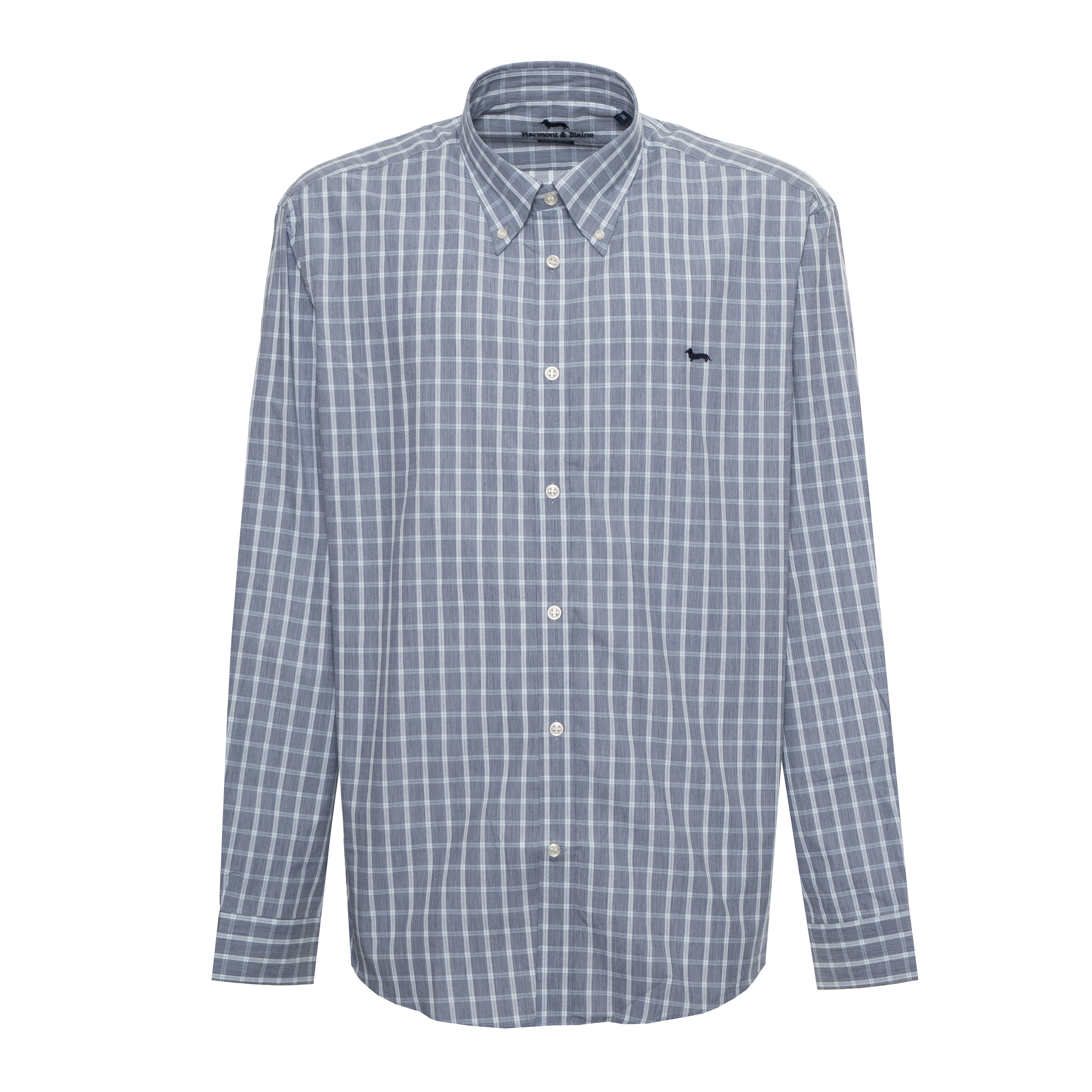 CHEMISE À CARREAUX, POUR HOMMES, BUTTON DOWN, MANCHES LONGUES, BICOLORE, LOGO BRODÉ, FERMETURE BOUTON