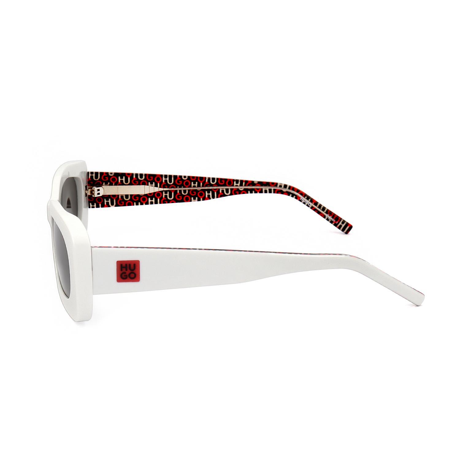 Cette paire de lunettes HUGO se définit par une monture rectangulaire aux angles arrondis, offrant une allure à la fois massive et équilibrée. Le travail sur les volumes est particulièrement visible au niveau du pont et des cercles de 52 mm, créant une harmonie visuelle puissante. Les branches révèlent des motifs internes complexes qui témoignent d'une attention particulière portée aux finitions artisanales de l'accessoire.