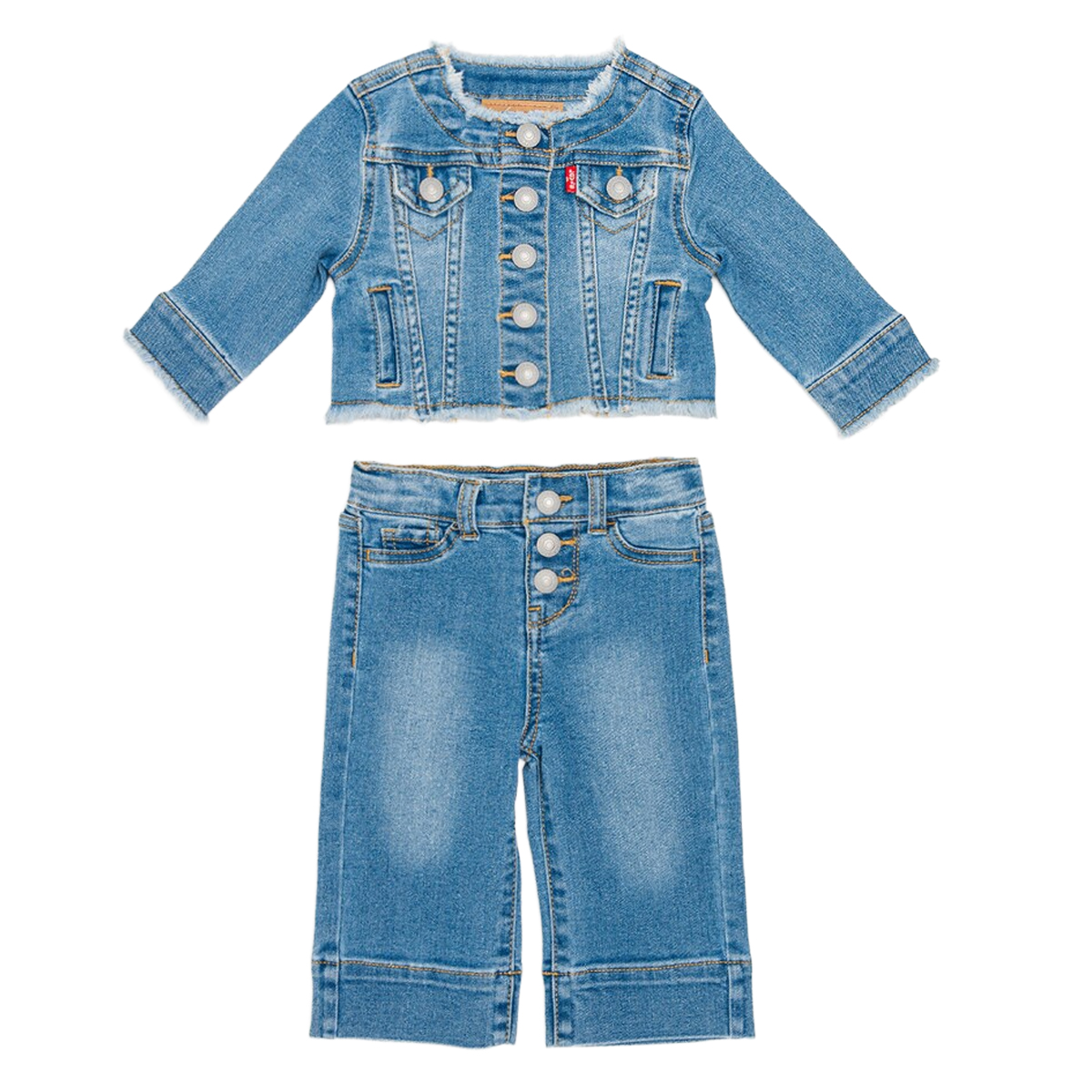 Ce SET 2 PEZZI LVG JACKET TEE & WIDE JEAN SET de LEVI'S privilégie une approche tactile et qualitative du vêtement. L'aspect texturé de la veste avec son col effiloché contraste avec la fluidité du pantalon large, créant une harmonie visuelle saisissante qui valorise le savoir-faire de la maison.