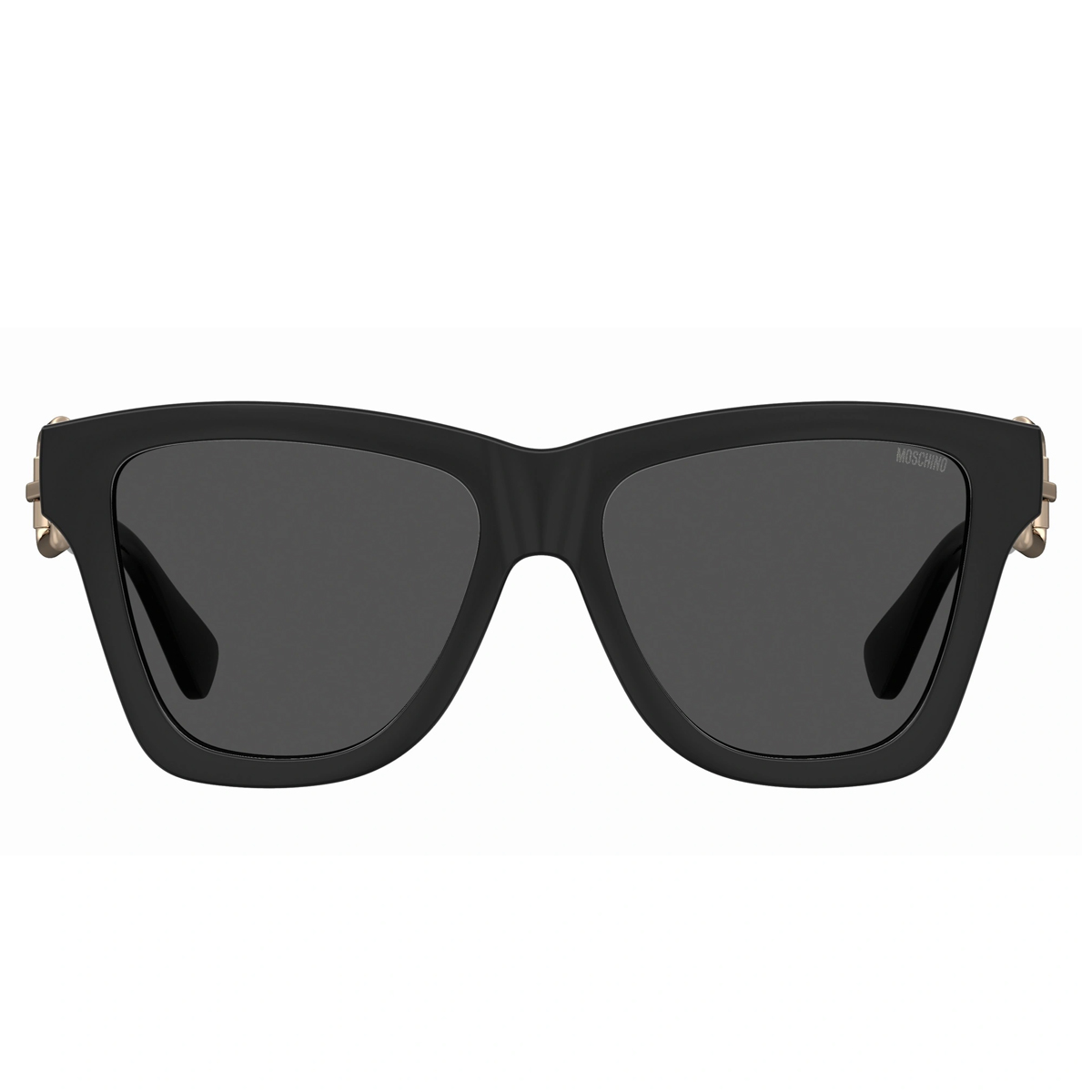Ces lunettes de soleil MOSCHINO affichent une silhouette affirmée dont le caractère repose sur des détails de quincaillerie travaillés. Les branches larges sont ornées d'une boucle métallique et d'œillets qui soulignent une approche audacieuse du design d'accessoires. La forme géométrique de la face crée un équilibre visuel puissant, tandis que la longueur de branche de 140 mm assure une stabilité optimale.