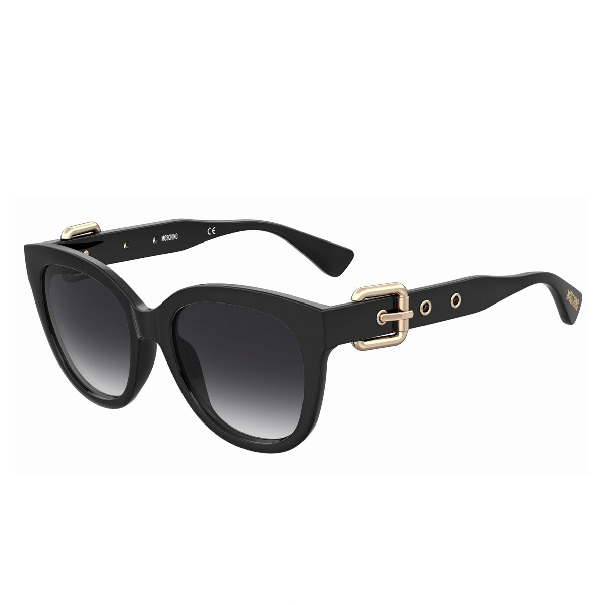 Ces lunettes de soleil signées MOSCHINO arborent une silhouette papillonnante affirmée. L'attention portée aux détails est visible dans l'ornementation des branches, où des boucles métalliques et des œillets apportent une dimension structurale unique. Le pont de 19mm assure un maintien stable et harmonieux, tandis que les verres dégradés adoucissent l'ensemble du profil.