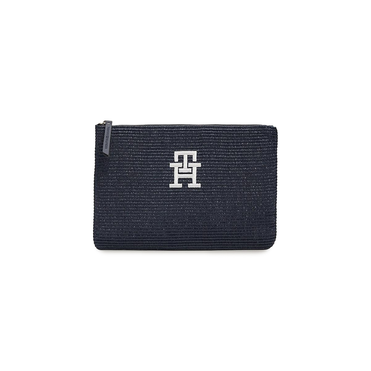 Cette pochette TH BEACH POUCH, DW6 par TOMMY HILFIGER est un accessoire de mode élégant dont la structure tressée offre un relief visuel unique. Le monogramme emblématique brodé au centre affirme l'identité visuelle de la marque, tandis que le format rectangulaire assure une prise en main confortable et un rangement efficace.