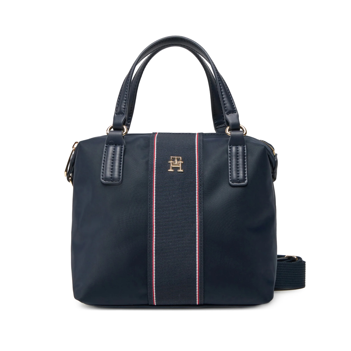 SAC À MAIN, POUR FEMMES, DOUBLE POIGNEE, BANDOULIERE AMOVIBLE, UNI, AVEC LOGO, FERMETURE ZIP, POPPY SMALL TOTE CORP, DIM 33 X 23 X 12 CM
