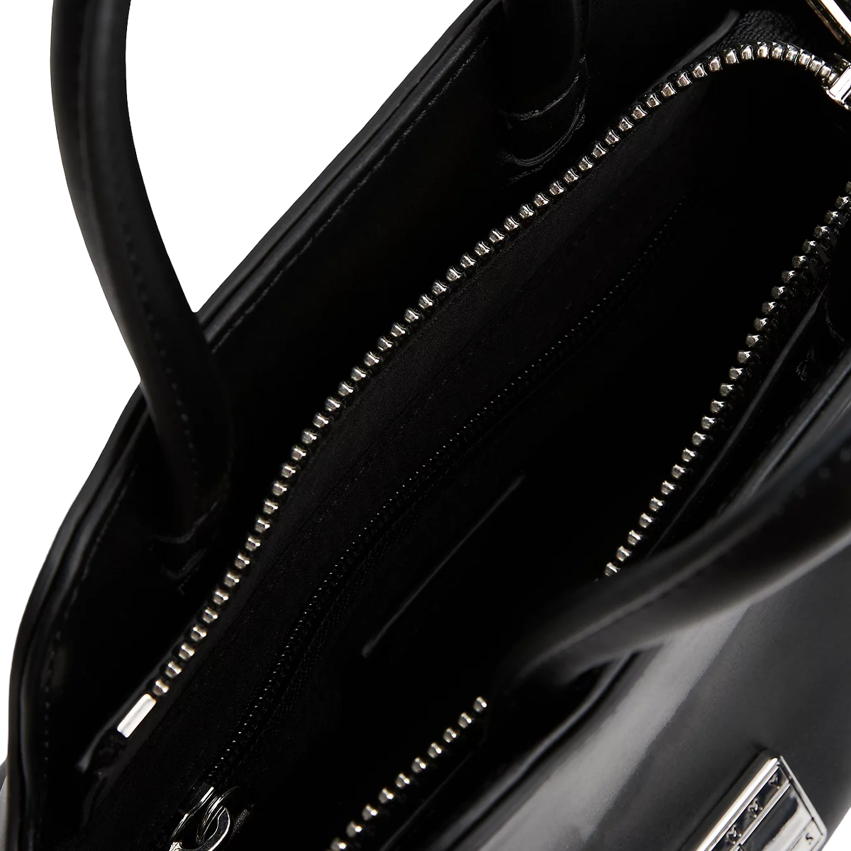SAC À MAIN, POUR FEMMES, DOUBLE POIGNEE, UNI, AVEC LOGO, FERMETURE ZIP