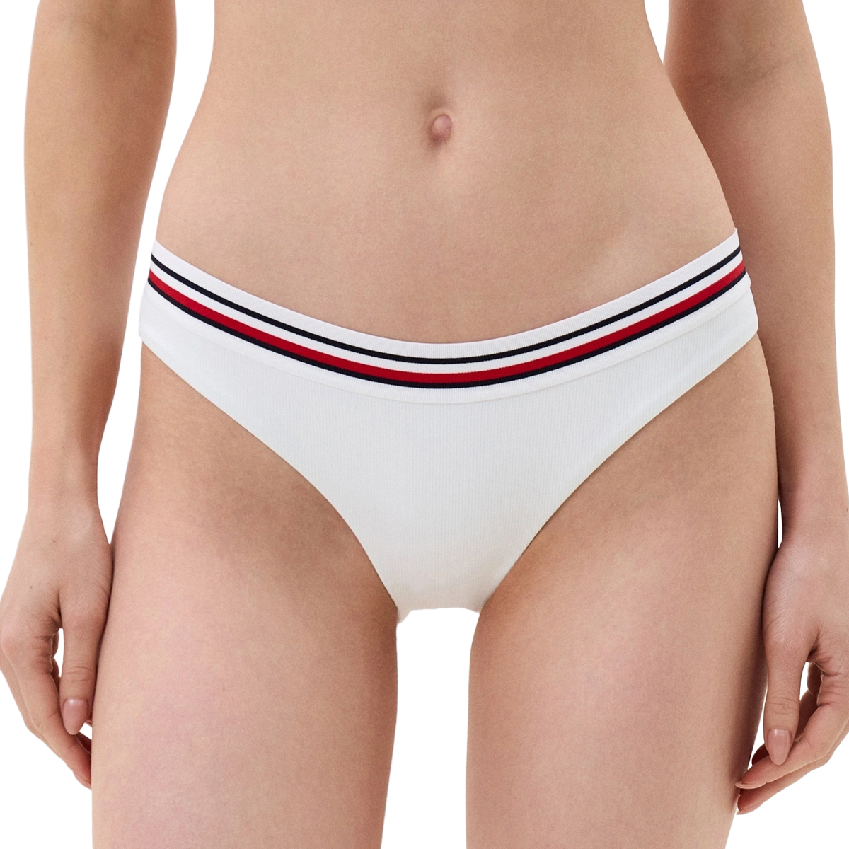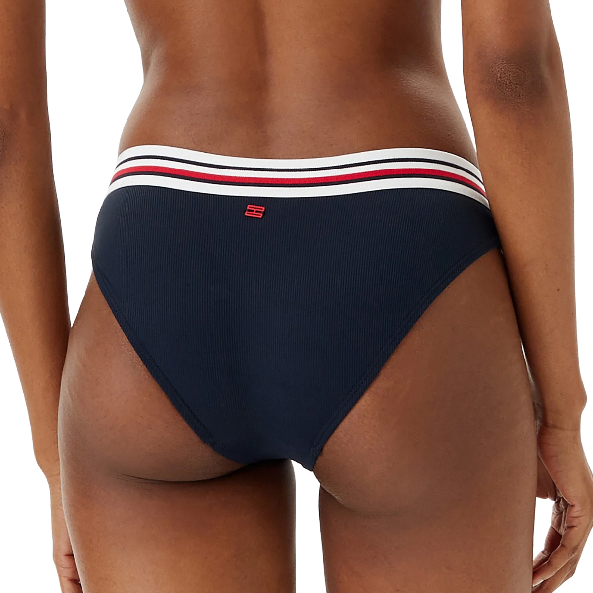 Ce costume CLASSIC BIKINI, YCD de TOMMY HILFIGER est une pièce de bain au caractère affirmé, souligné par une ceinture élastique logotypée. Sa coupe classique offre une couverture modérée, tandis que le relief du tissu côtelé apporte une élégance discrète. Les finitions soignées aux ouvertures des jambes témoignent d'une fabrication de haute précision.