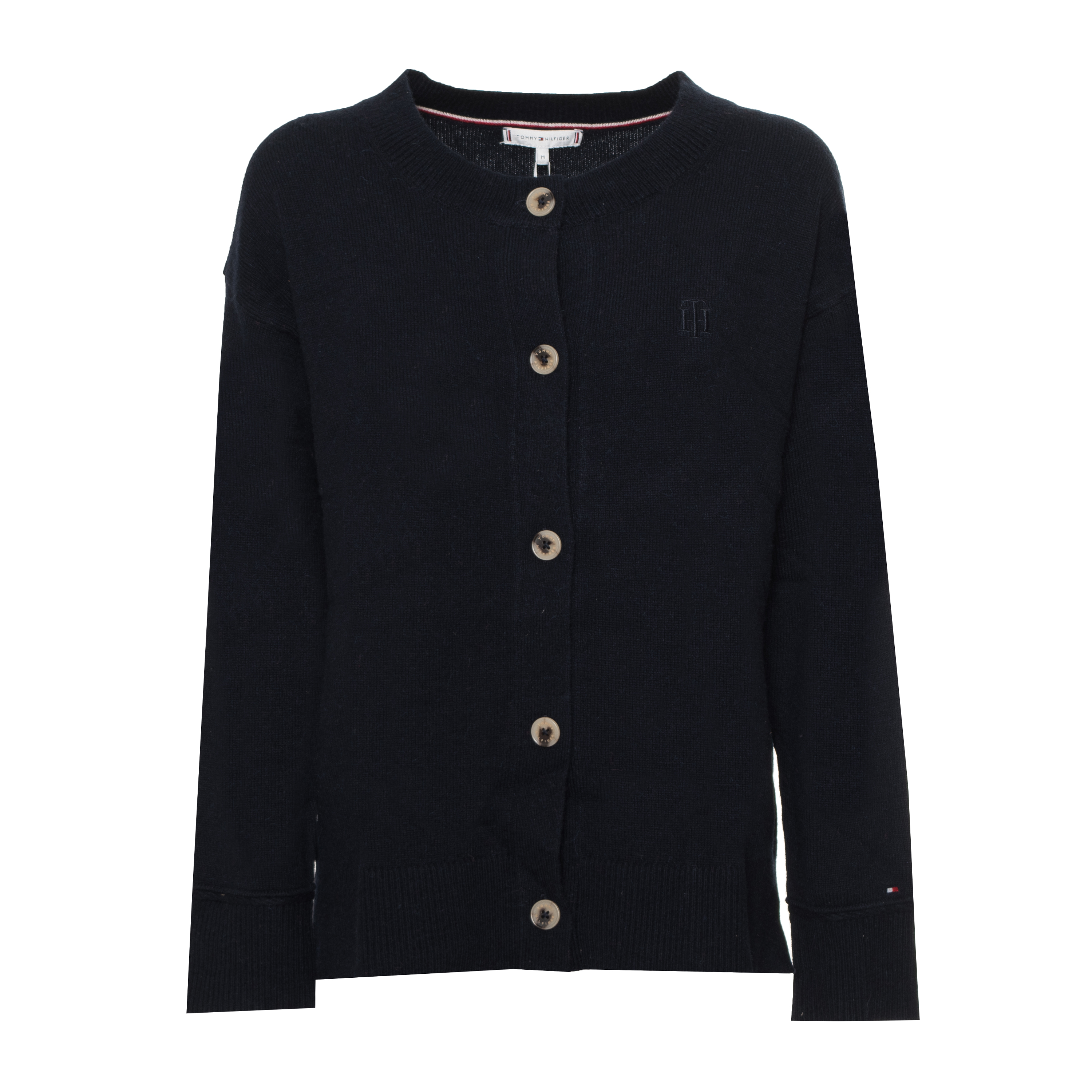 CARDIGAN, POUR FEMMES, COL RAS DU COU, MANCHES LONGUES, UNI, AVEC LOGO, AVEC BOUTONS