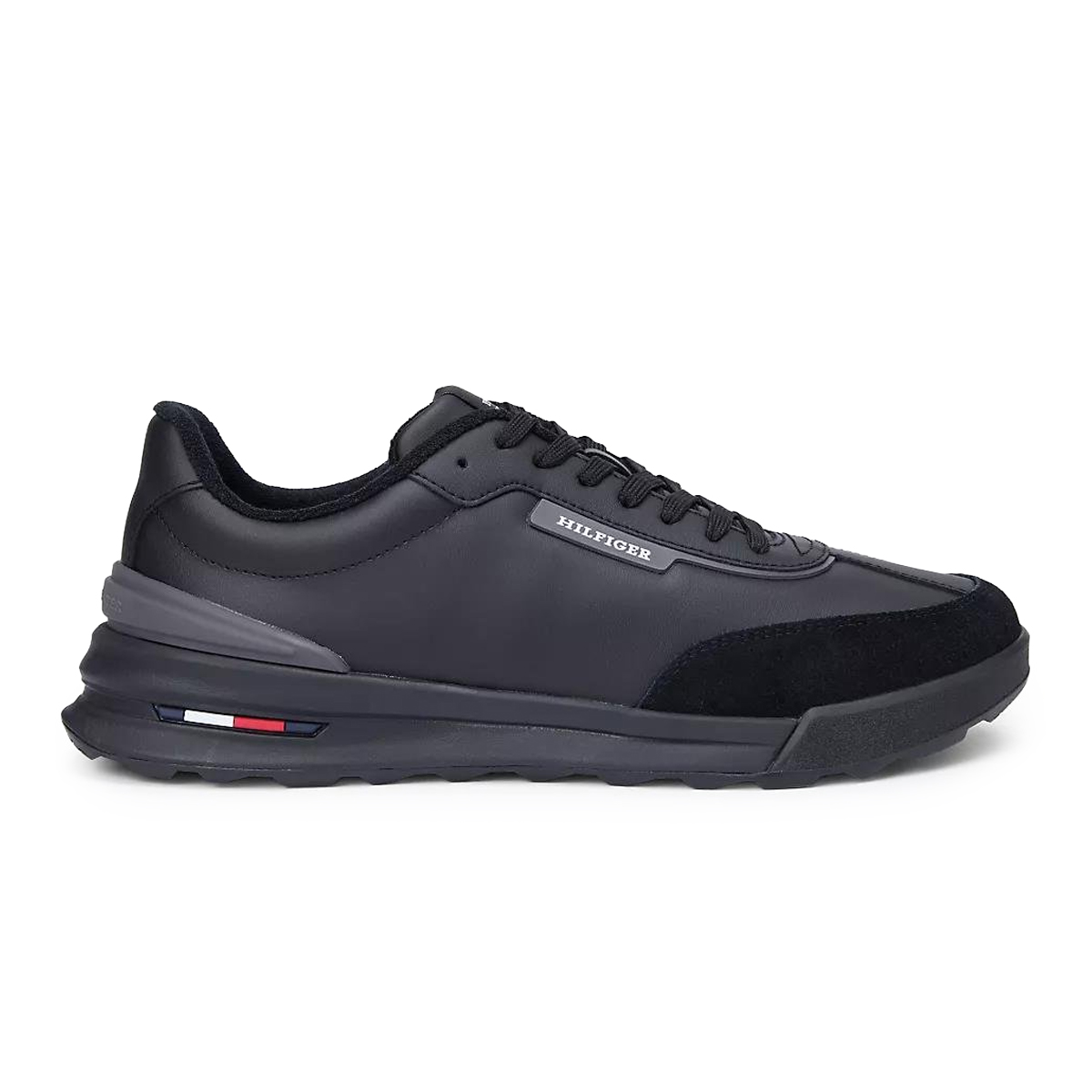 Cette sneakers RETRO RUNNER MIX LEA, BDS de TOMMY HILFIGER est une chaussure basse à lacets qui met en avant une architecture complexe et soignée. On observe des empiècements superposés qui renforcent le bout du pied et le contour du talon, offrant une stabilité accrue. Son allure robuste est équilibrée par des lignes fuyantes qui évoquent la vitesse.