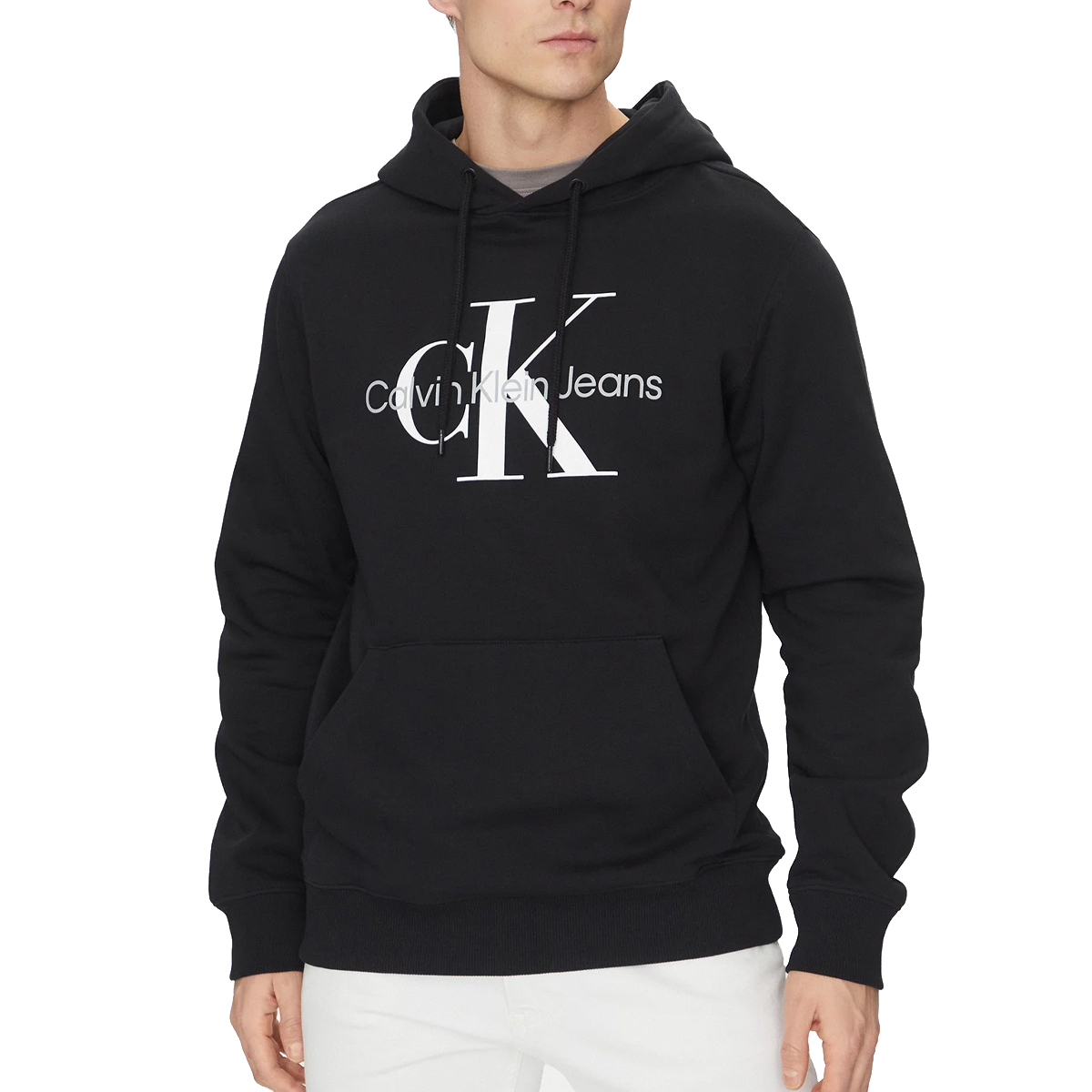 SWEATSHIRT, FOR MEN, LONG SLEEVES, SOLID COLOUR, FLEECE, PRINTED LOGO, WITH HOOD