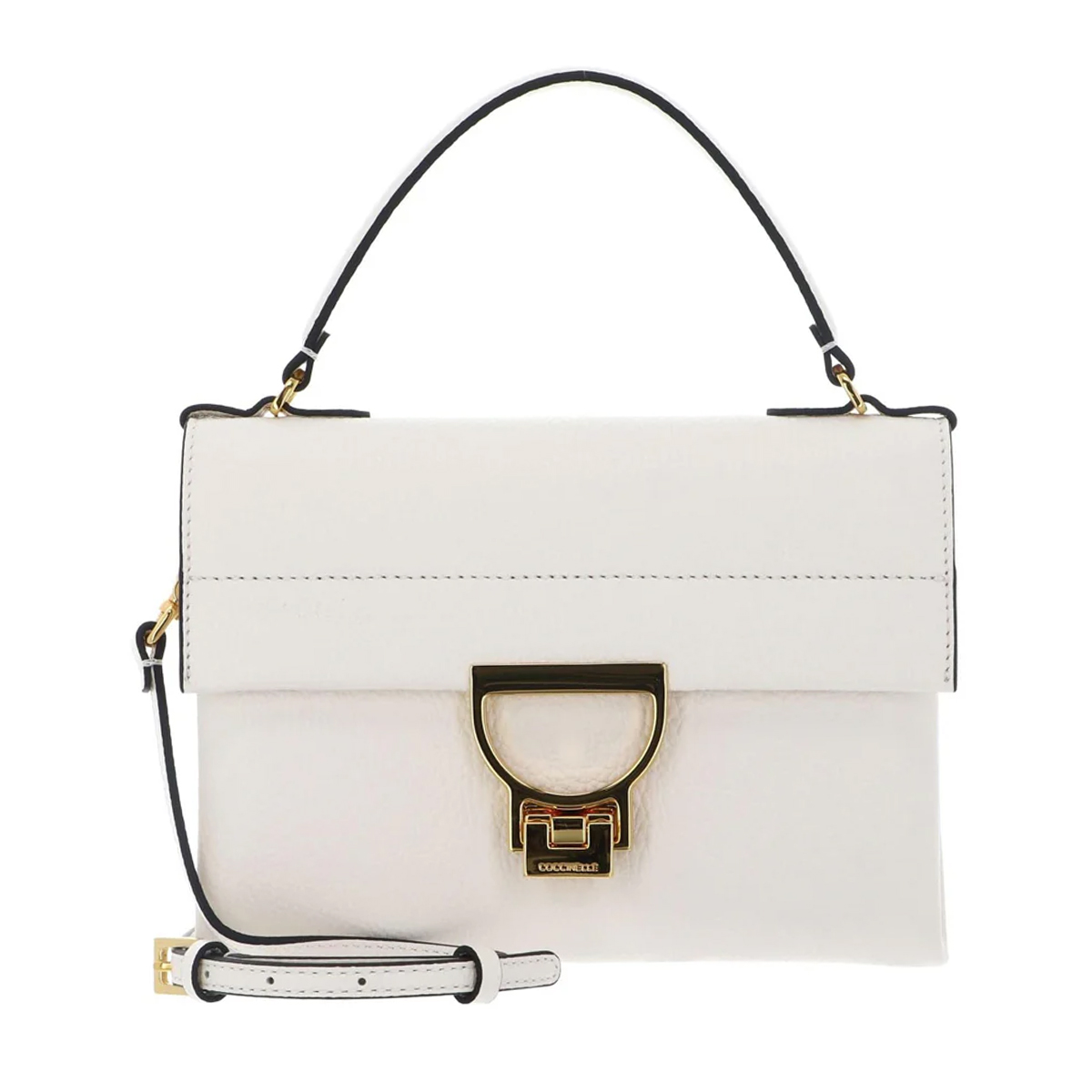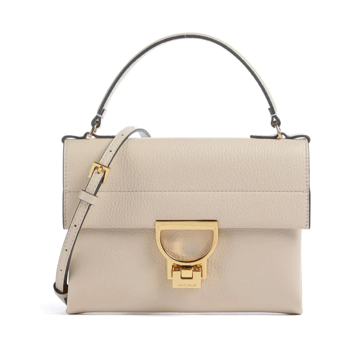 Ez a COCCINELLE gyártmányú ARLETTIS kézitáska a letisztult, strukturált vonalvezetés mintaképe. Az elülső fémcsat különleges, ívelt formája karakteres megjelenést kölcsönöz a terméknek, kiemelve a márkára jellemző esztétikát.