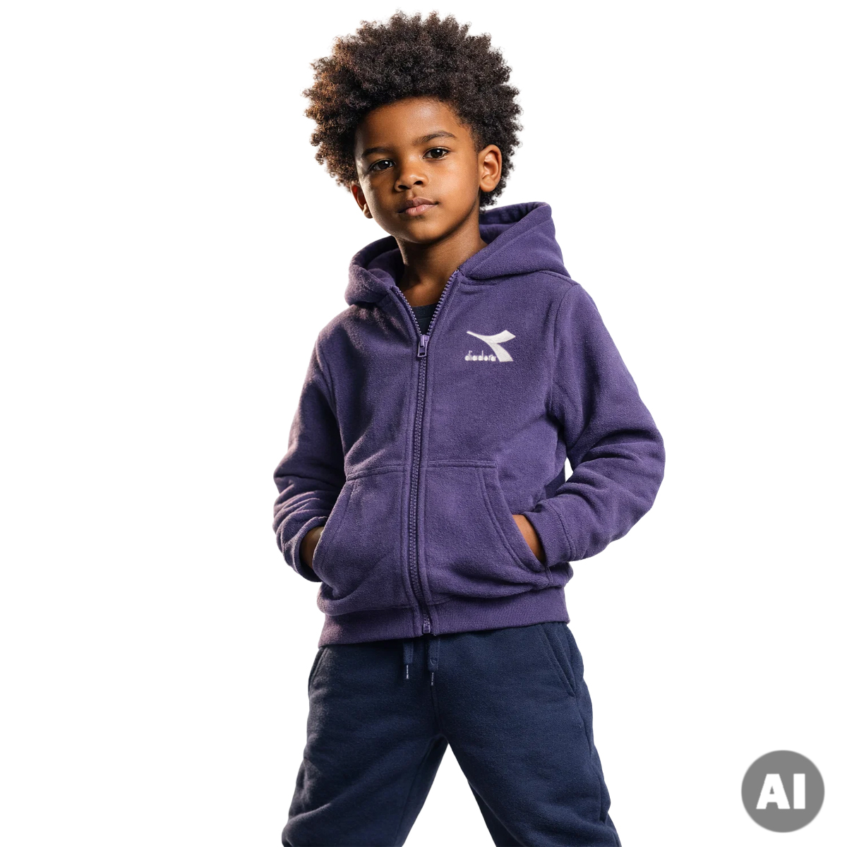 FLEECE JACKET, FOR GIRLS, FOR KIDS, WITH POCKET, WITH HOOD, LONG SLEEVES, SOLID COLOUR, FLEECE, EMBROIDERED LOGO, ZIP CLOSURE
