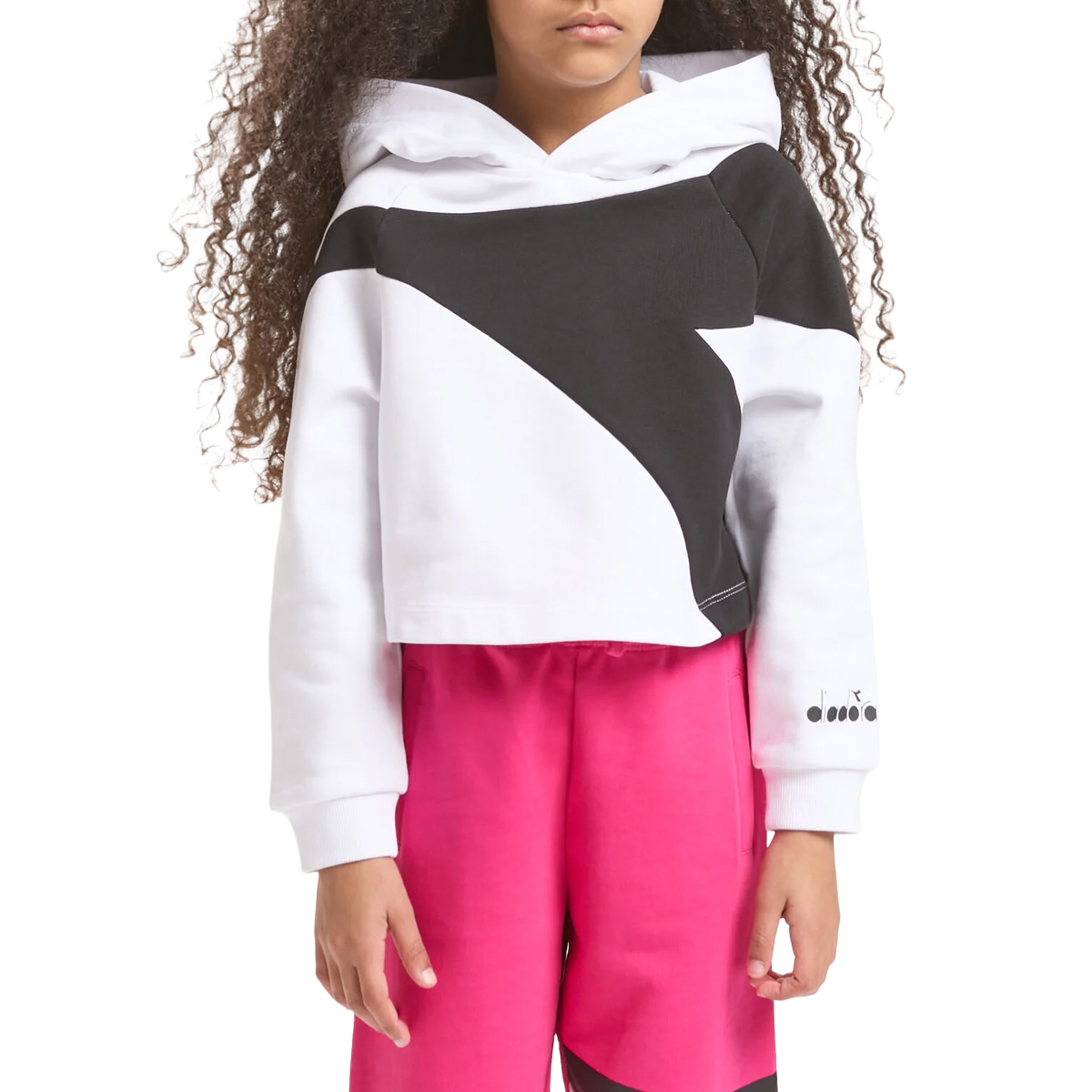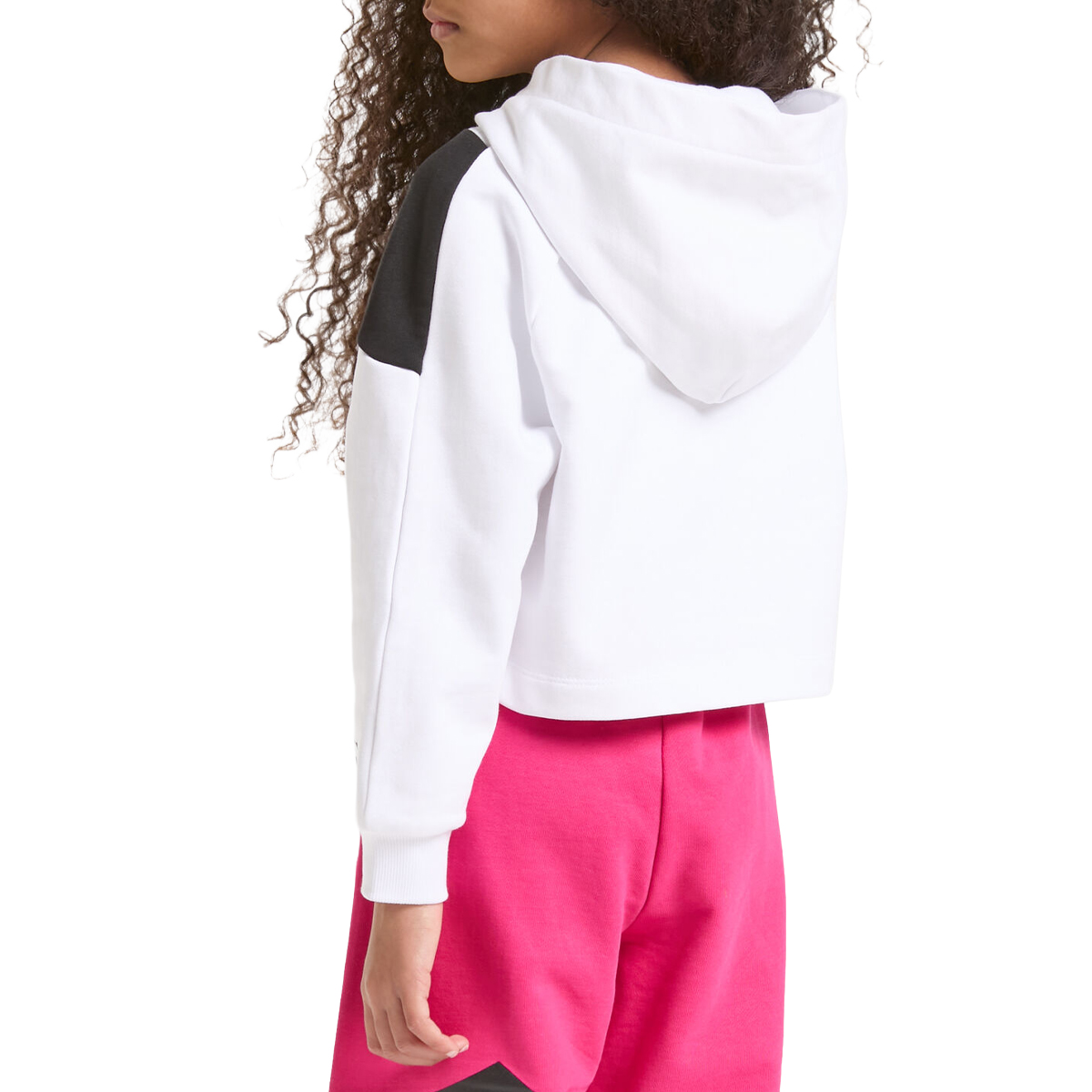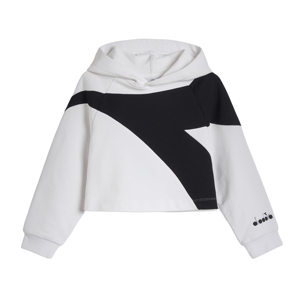 SWEATSHIRT, FOR GIRLS, WITH HOOD, SHORT DROP, LONG SLEEVES, BRUSHED FABRIC, BI-COLOR, PRINTED LOGO